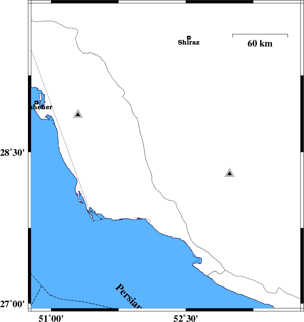 | 2018/01/13 | 01:41:30.5 | 05:11:30.5 | 27.634 | 53.755 | 14 | ML2.5 | Fars Province, 58 km -West of Lar |