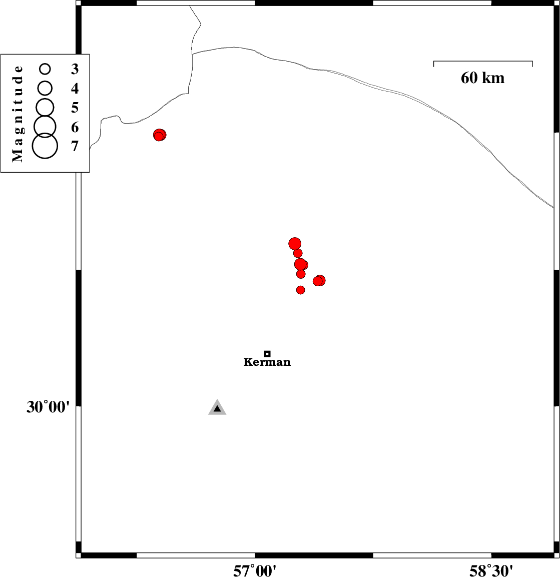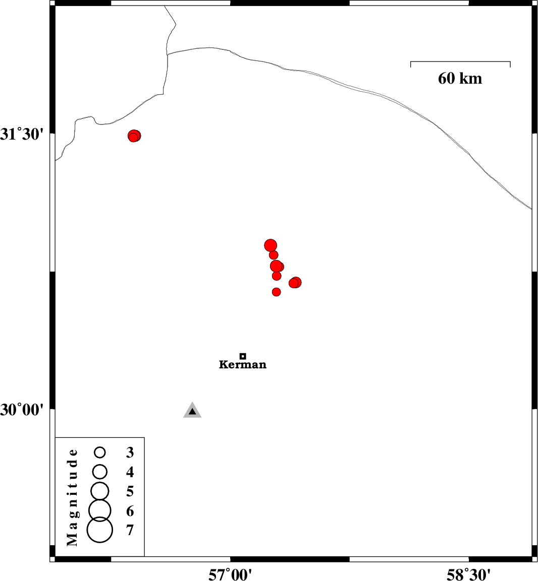 2018/01/19 15:09:22.1 18:39:22.1 30.78157.28714 ML3.4 Kerman Province, 58 km North-East of Kerman