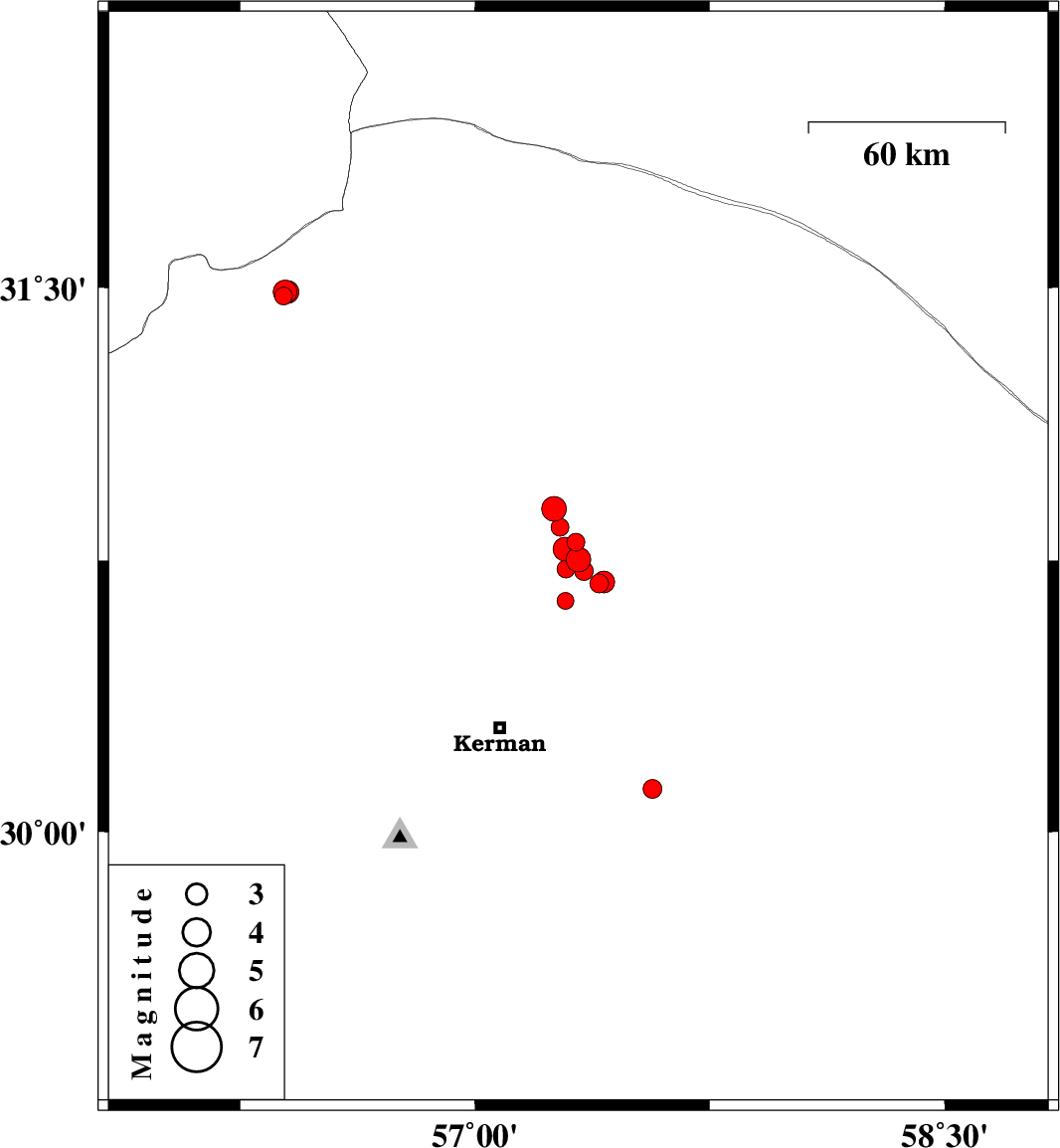 2018/01/19 15:09:22.1 18:39:22.1 30.78157.28714 ML3.4 Kerman Province, 58 km North-East of Kerman