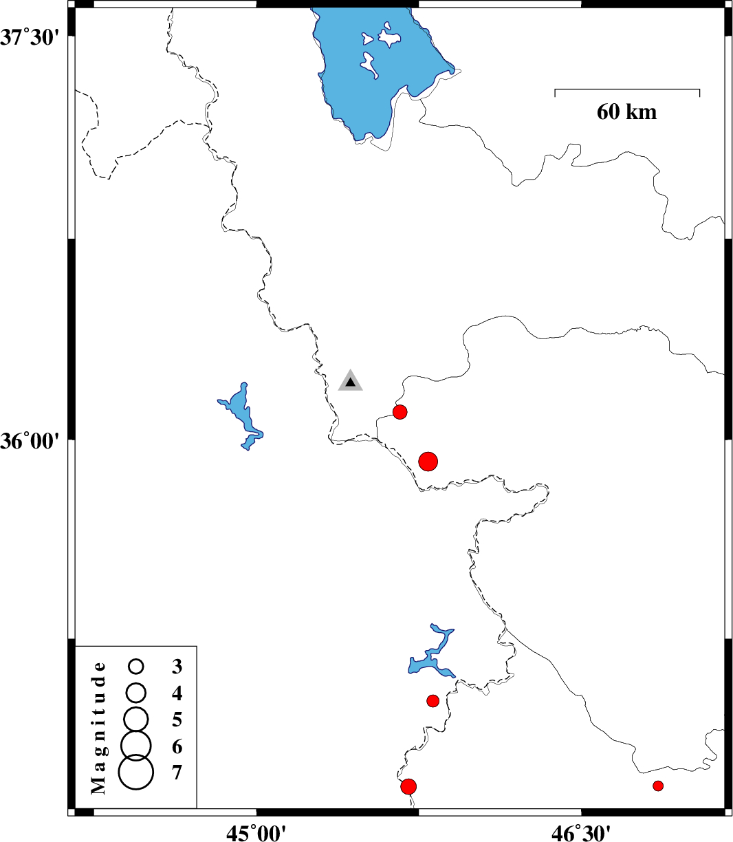 | 2018/01/16 | 13:38:02.5 | 17:08:02.5 | 35.014 | 45.815 | 14 | ML2.6 | Iraq, 28 km North of Tazehabad | ||