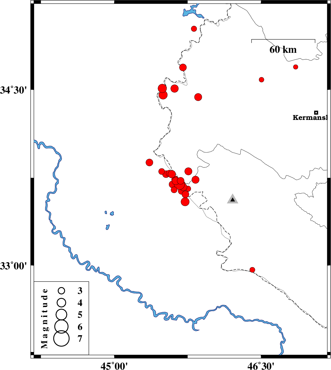2018/01/22 12:28:24.6 15:58:24.6 33.73445.8315 ML3.4 Ilam Province, 46 km South of Gilan-E-Gharb