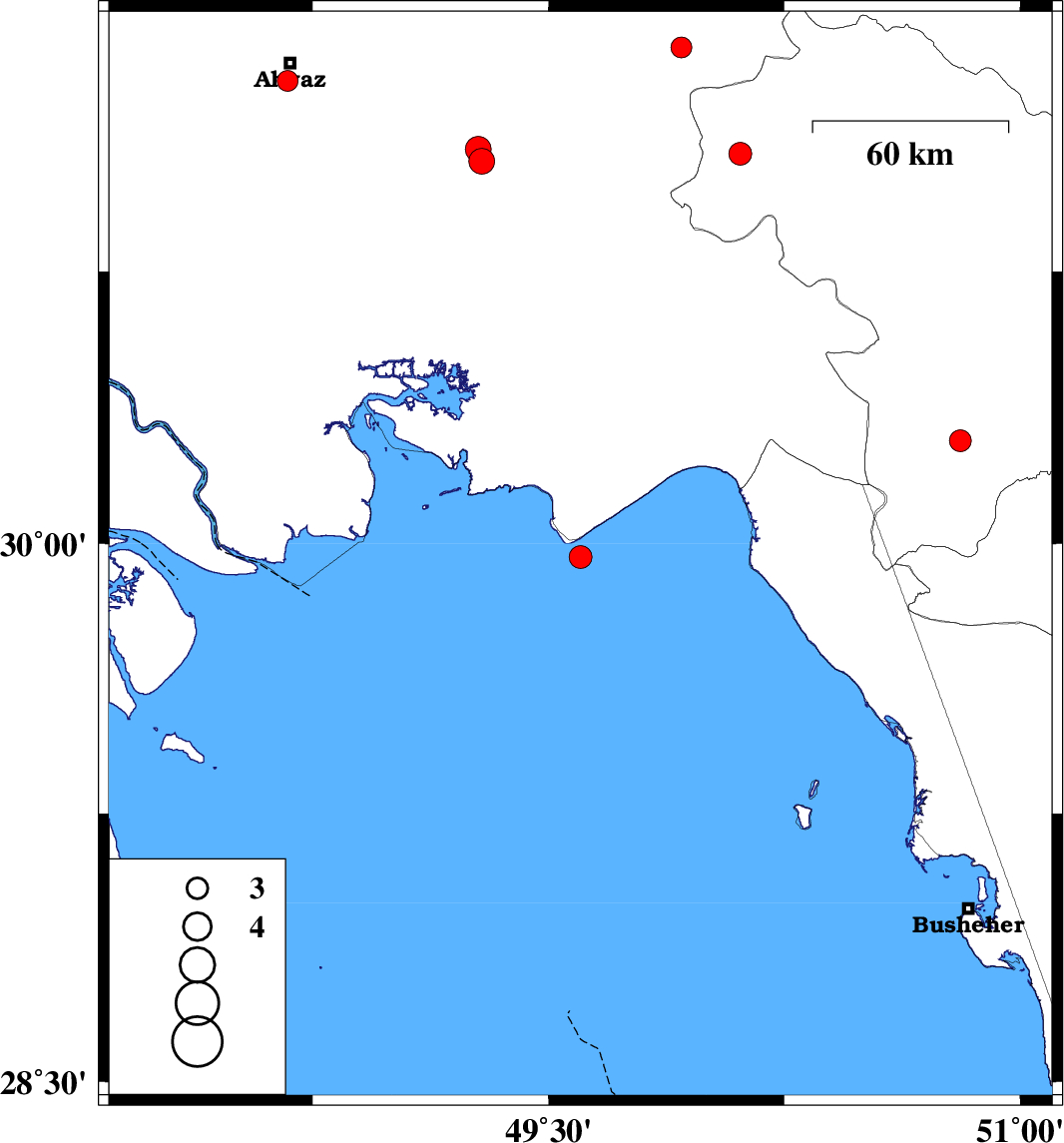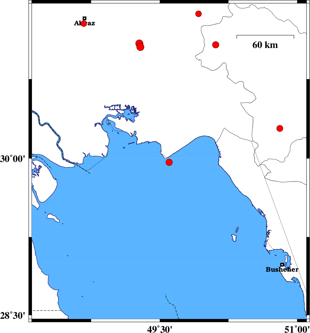 Persian Gulf, 32 km South-West of Hendijan | |
