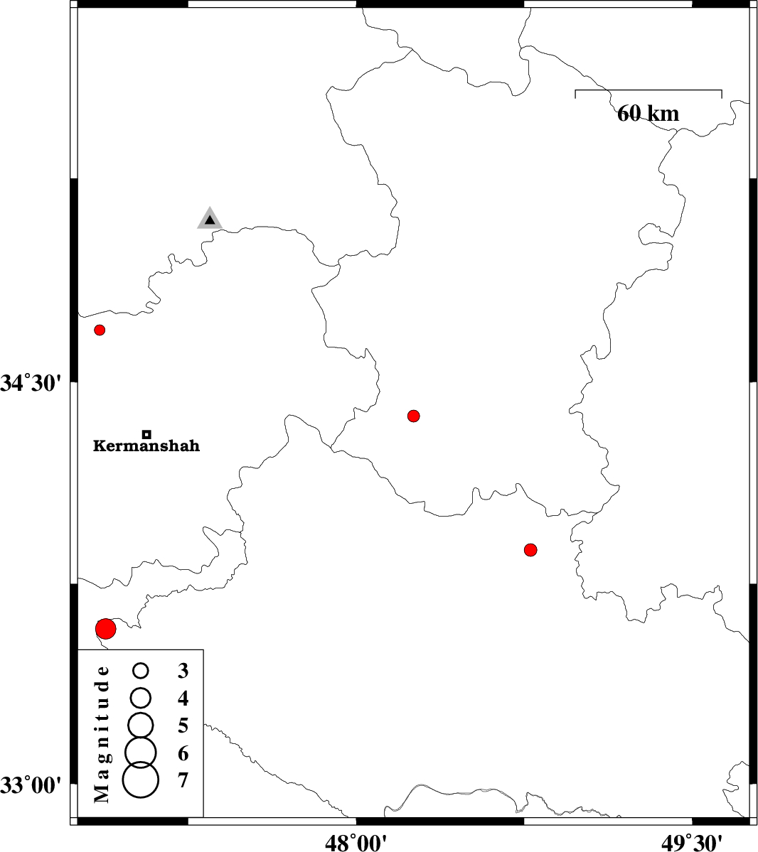 | 2018/01/21 | 15:05:55.5 | 18:35:55.5 | 34.691 | 46.855 | 8 | ML2.1 | Kermanshah Province, 16 km South of Kamyaran |