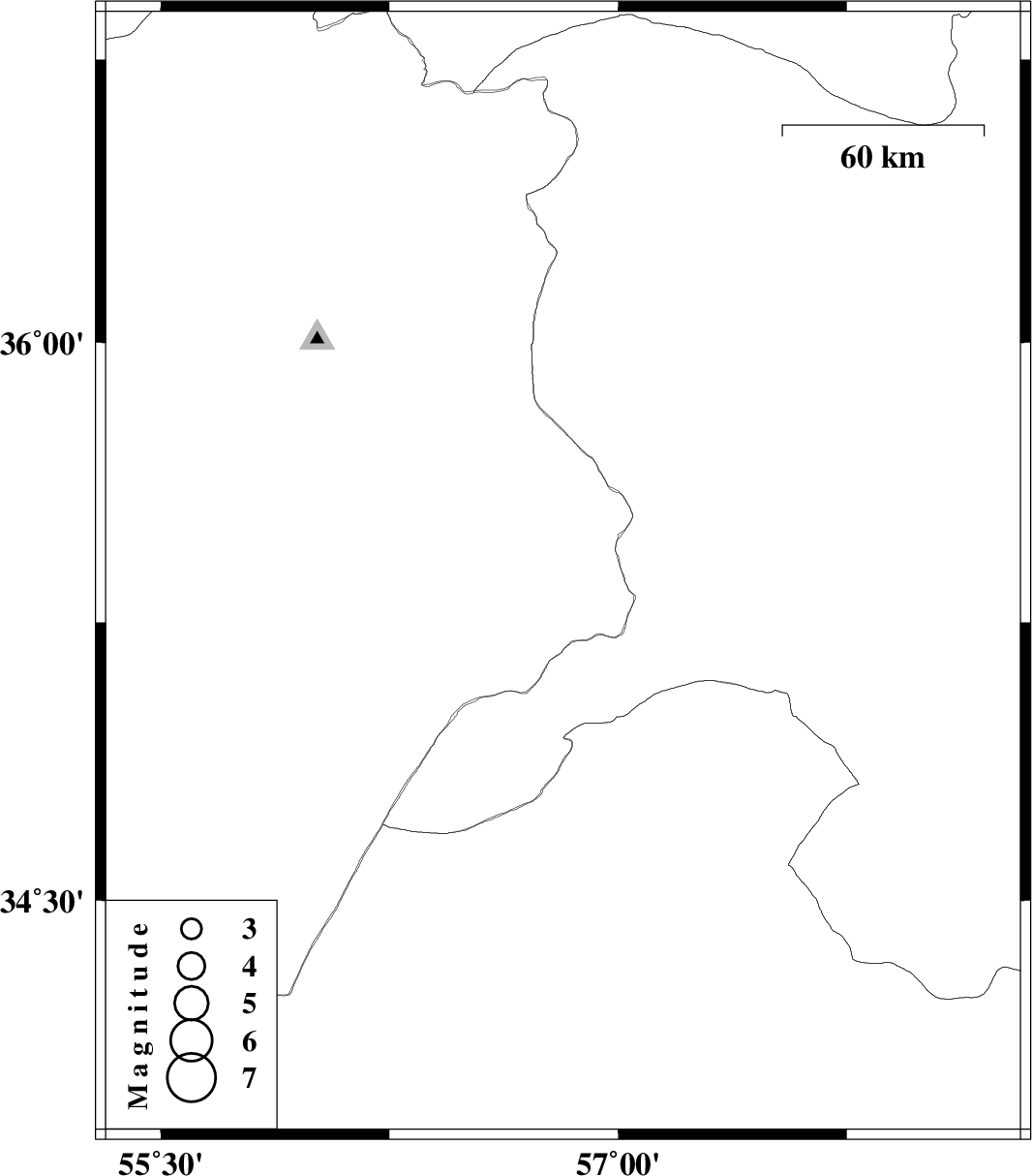 | 2018/01/25 | 23:03:30.9 | 02:33:30.9 | 35.377 | 56.819 | 15 | ML2.6 | Semnan Province, 104 km North-West of Bardeskan |