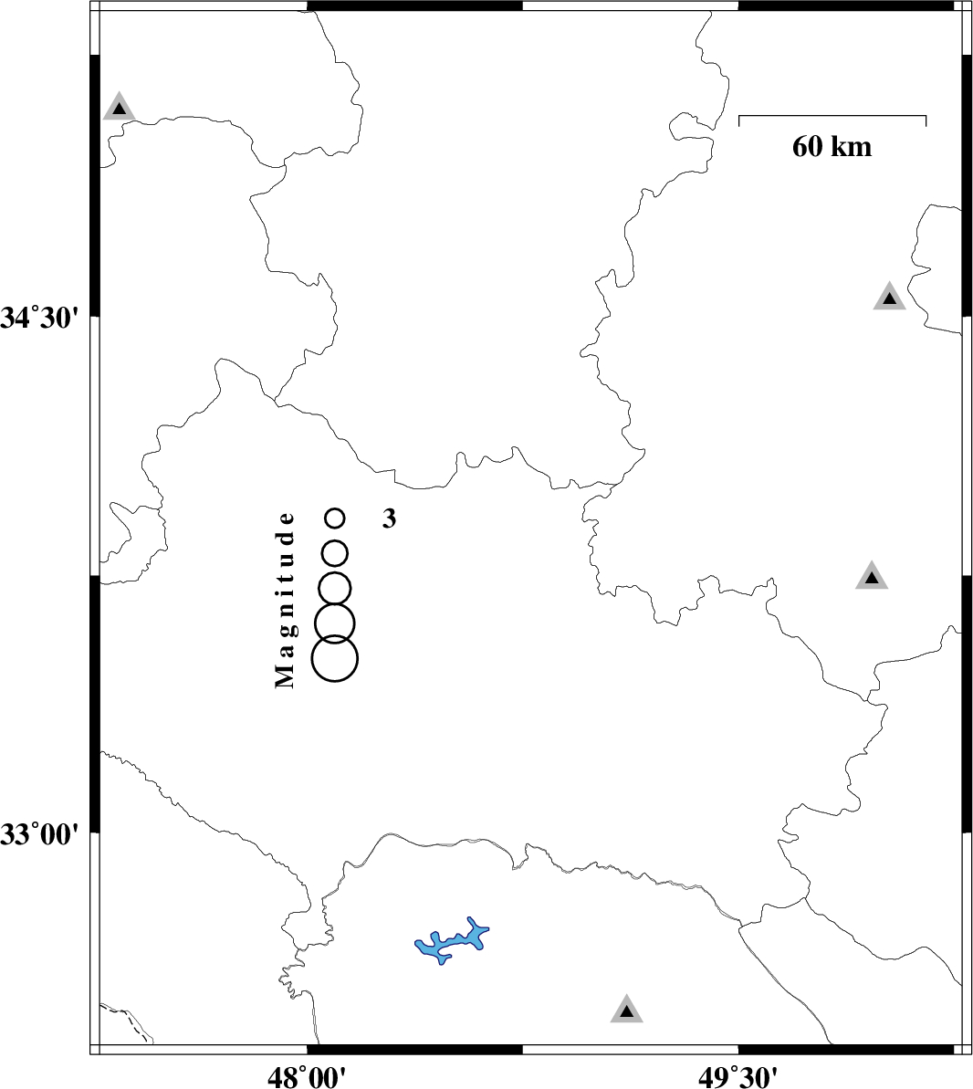 | 2018/01/04 | 04:40:17.9 | 08:10:17.9 | 33.781 | 48.822 | 9 | ML2.6 | Lorestan Province, 14 km South of Borujerd | ||