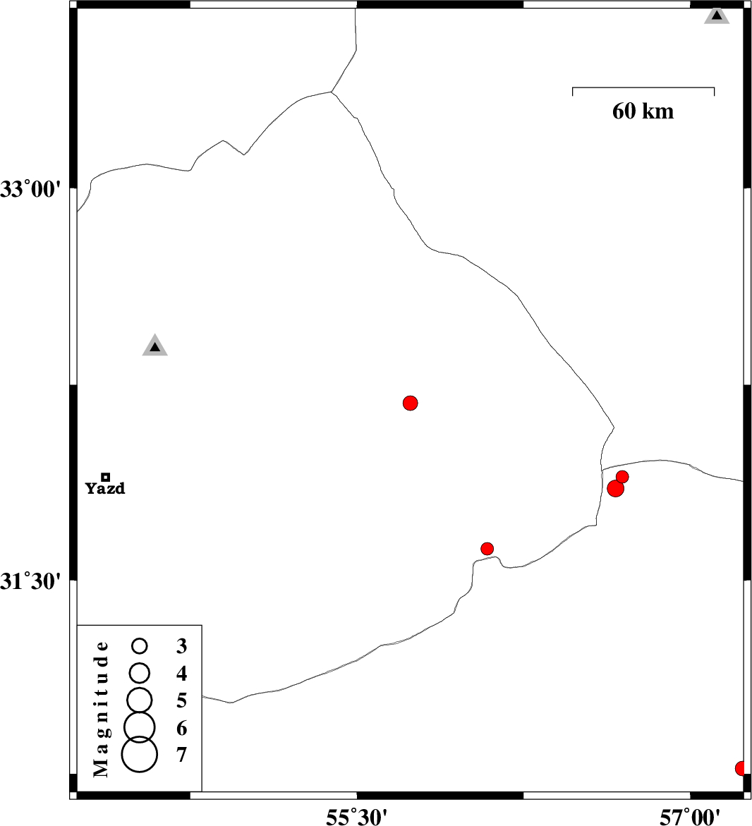 | 2018/01/31 | 04:54:19.4 | 08:24:19.4 | 32.18 | 55.74 | 14 | ML2.9 | Yazd Province, 72 km North-East of Bafq | ||