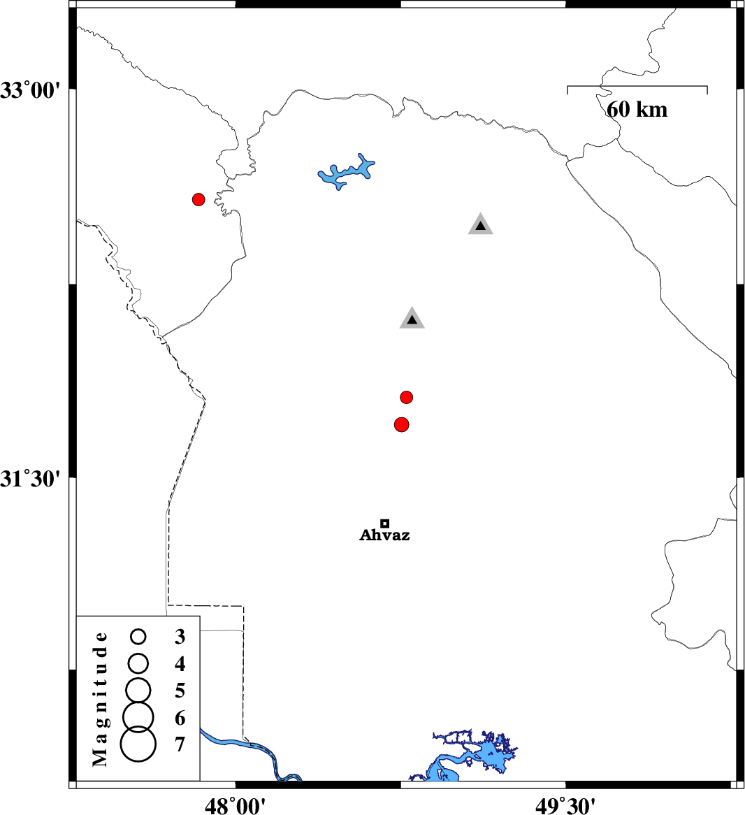 | 2018/02/01 | 02:46:10.1 | 06:16:10.1 | 31.705 | 48.754 | 15 | ML2.9 | Khoozestan Province, 39 km South of Shushtar | ||