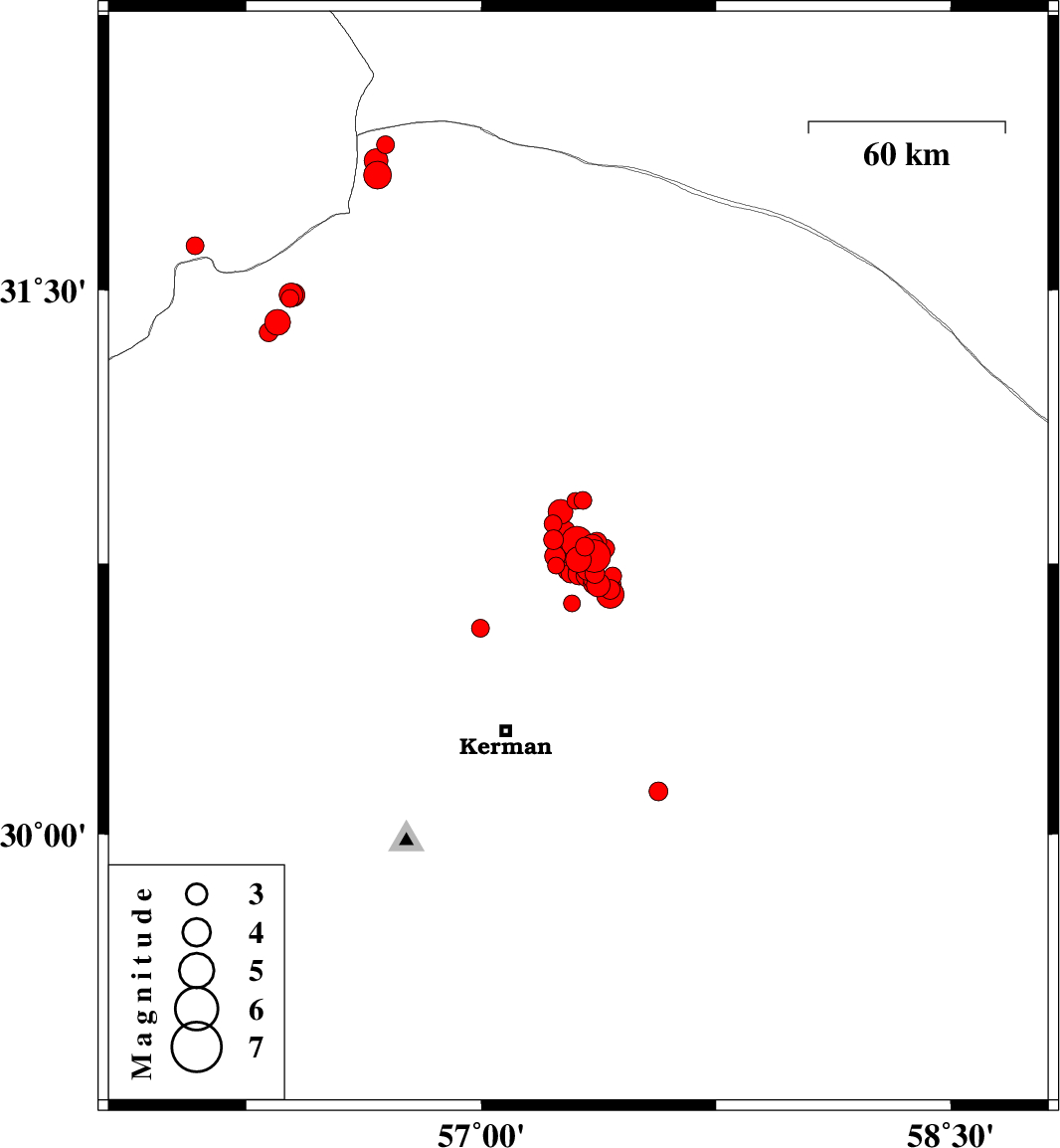2018/01/20 04:16:03.5 07:46:03.5 30.72157.34714 ML2.7 Kerman Province, 55 km North-East of Kerman