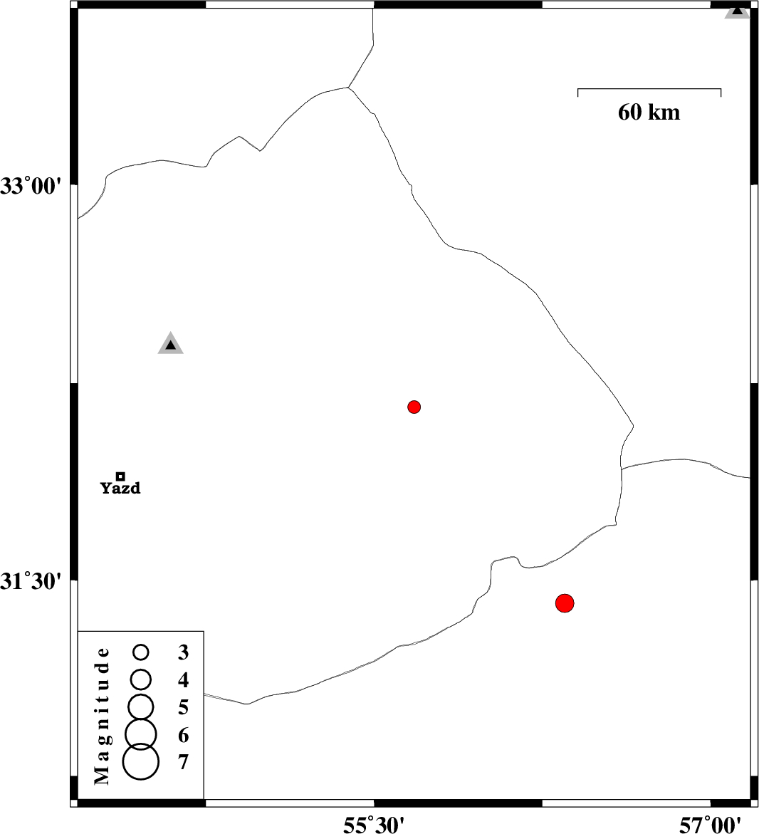 | 2018/02/06 | 05:43:05.8 | 09:13:05.8 | 31.412 | 56.35 | 14 | ML3.6 | Kerman Province, 47 km North-West of Ravar |