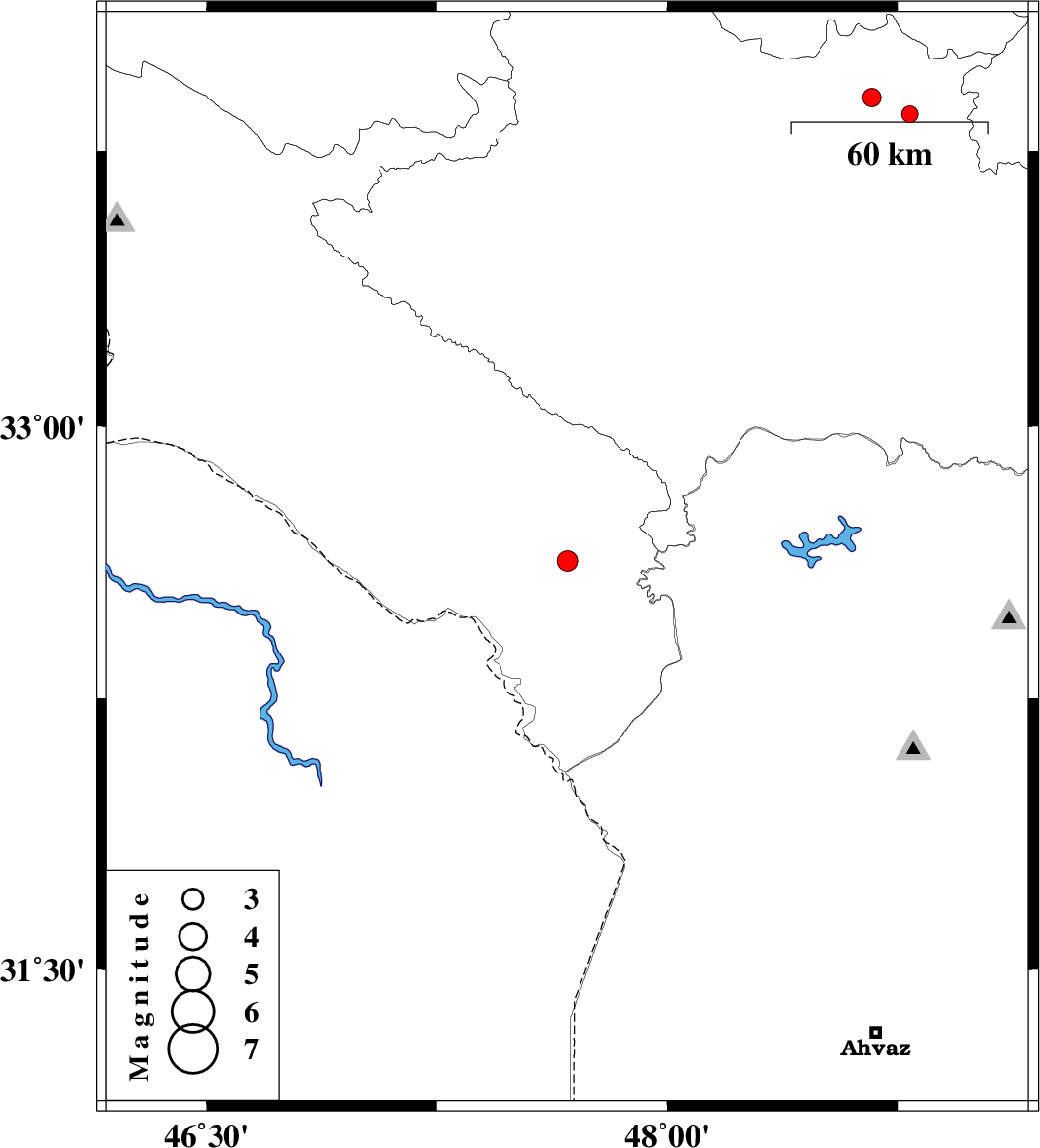 | 2018/02/11 | 10:45:41.3 | 14:15:41.3 | 32.63 | 47.675 | 17 | ML2.9 | Ilam Province, 39 km -East of Dehloran | ||