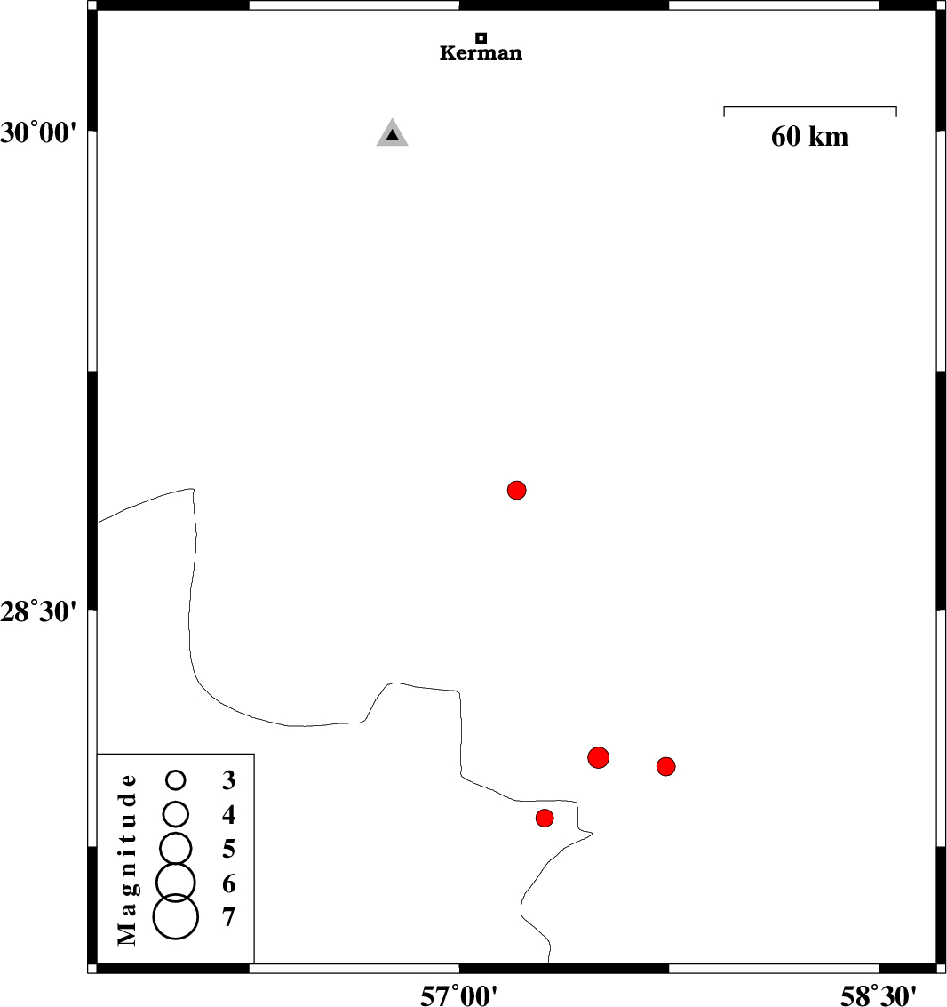 | 2018/02/08 | 16:20:55.4 | 19:50:55.4 | 28.004 | 57.738 | 18 | ML2.9 | Kerman Province, 7 km of Kahnuj |