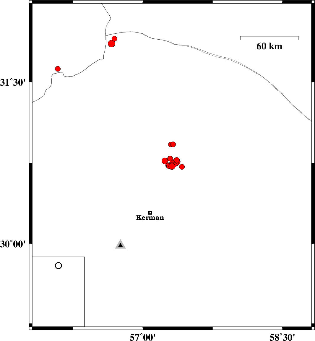 2018/01/28 05:59:54.8 09:29:54.8 30.71557.4214 ML2.5 Kerman Province, 58 km North-East of Kerman