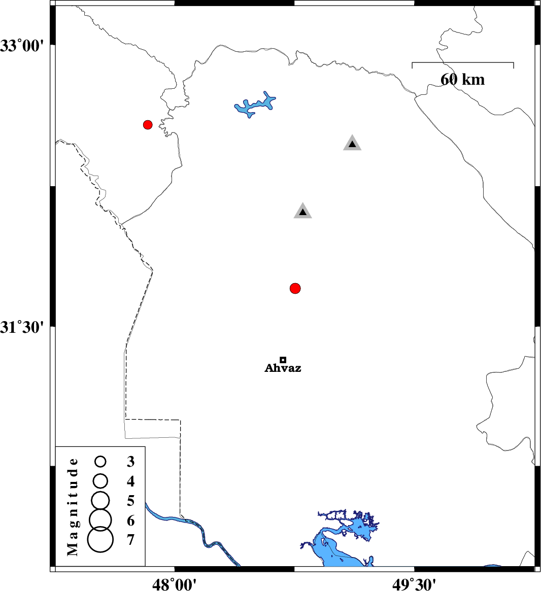| 2018/02/01 | 02:46:10.1 | 06:16:10.1 | 31.705 | 48.754 | 15 | ML2.9 | Khoozestan Province, 39 km South of Shushtar | ||