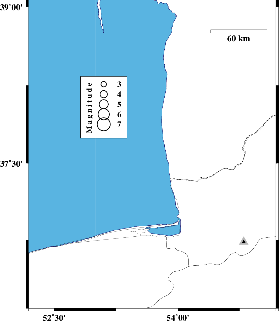 | 2018/01/30 | 23:59:12.0 | 03:29:12.0 | 37.582 | 53.689 | 15 | ML2.7 | Caspian Sea |