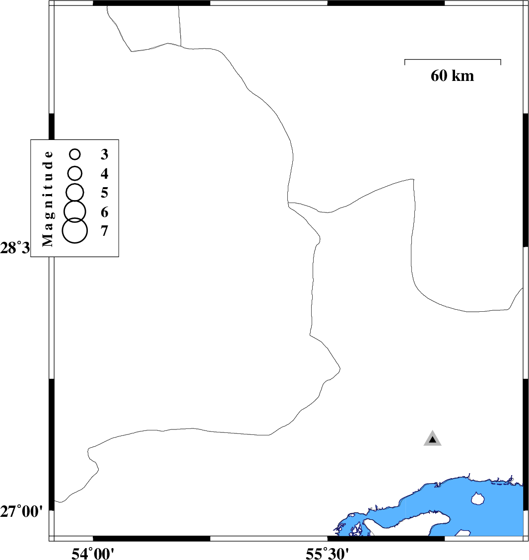 | 2018/02/15 | 19:03:30.1 | 22:33:30.1 | 28.353 | 55.251 | 6 | ML2.4 | Fars Province, 64 km -West of Hajiabad |
