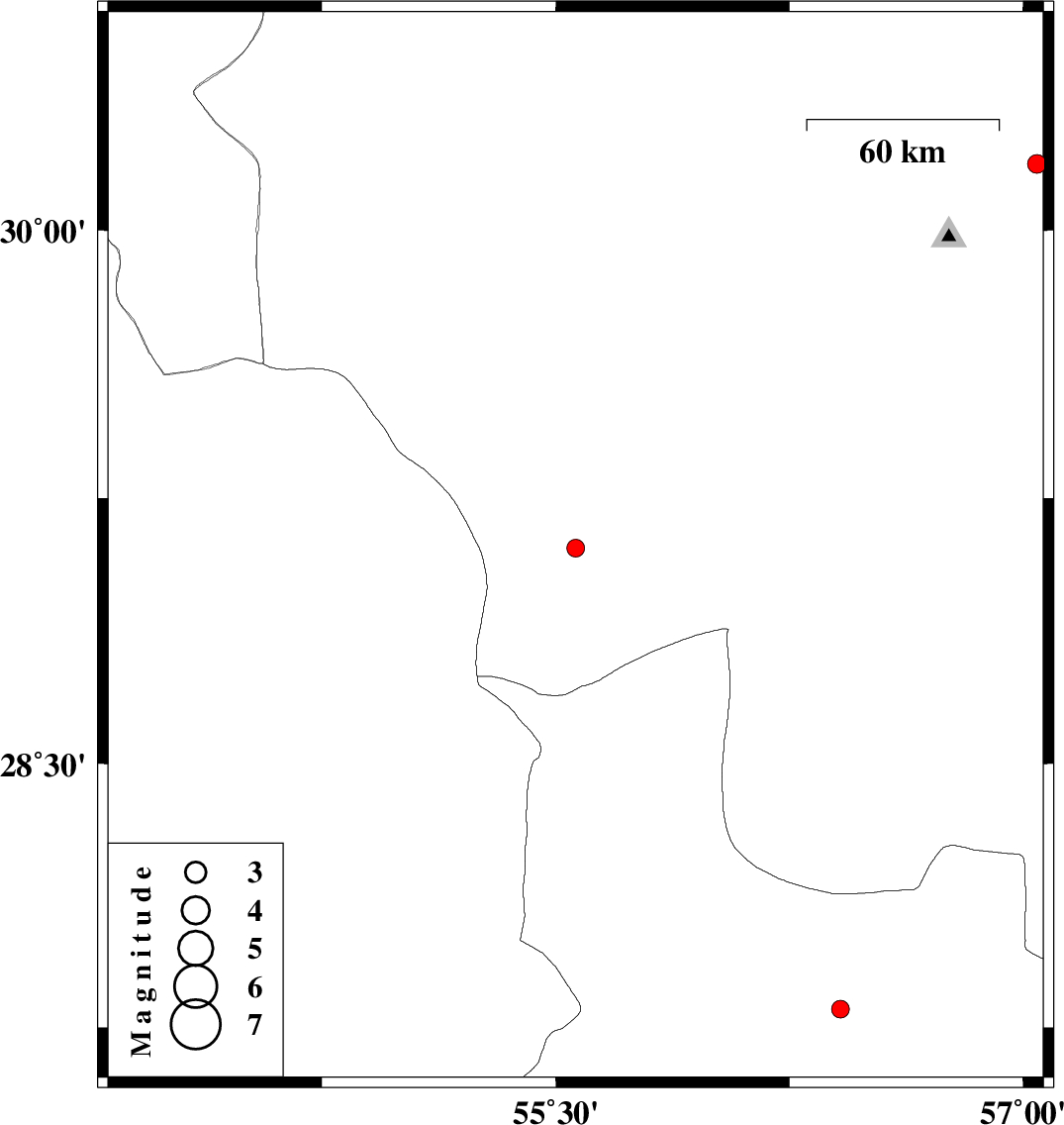 | 2018/02/23 | 02:50:26.8 | 06:20:26.8 | 30.185 | 57.044 | 18 | ML2.7 | Kerman Province, 12 km South of Kerman |