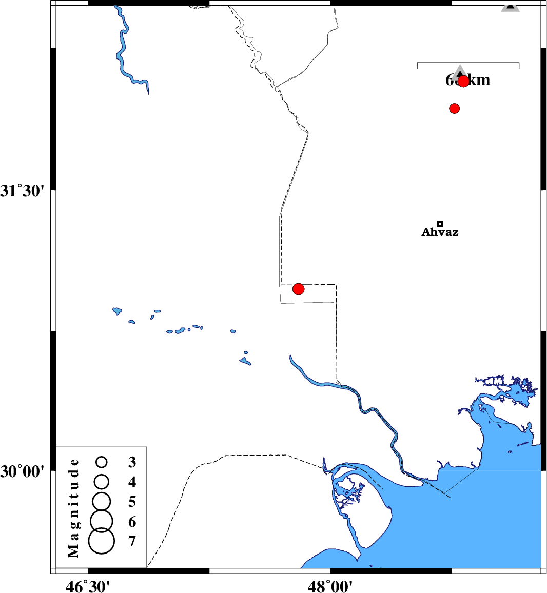 | 2018/02/27 | 14:45:03.0 | 18:15:03.0 | 31.932 | 48.766 | 15 | ML2.8 | Khoozestan Province, 15 km South of Shushtar |