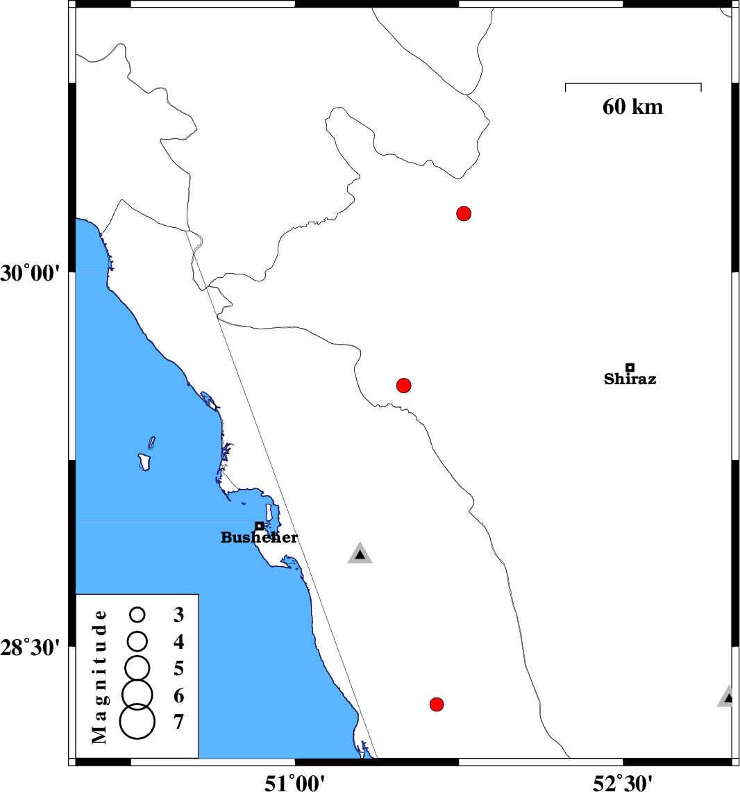 | 2018/03/03 | 23:17:27.4 | 02:47:27.4 | 28.265 | 51.648 | 16 | ML2.8 | Bushehr Province, 51 km South-East of Khormog | ||