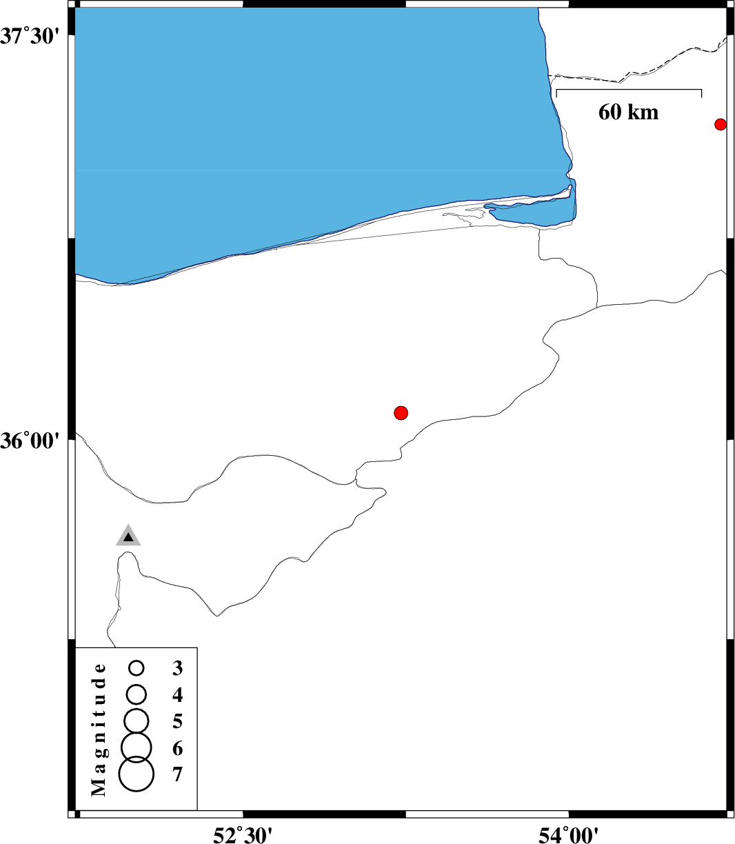 | 2018/03/05 | 01:49:22.7 | 05:19:22.7 | 36.1 | 53.227 | 14 | ML2.8 | Mazandaran Province, 15 km -East of Pol-E-Sefid | ||