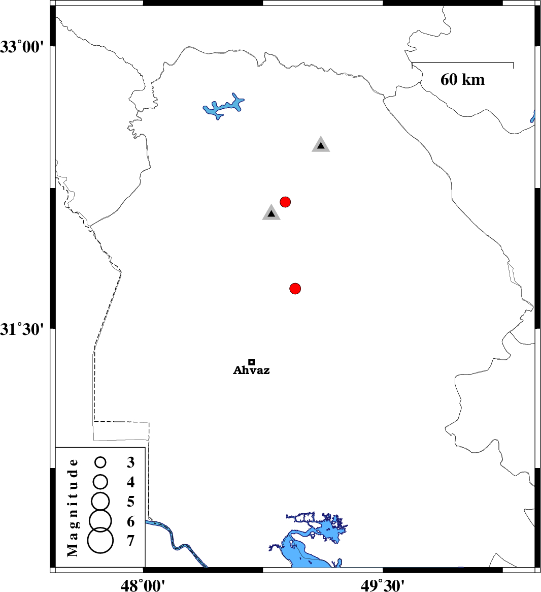 | 2018/03/12 | 01:25:08.3 | 04:55:08.3 | 32.175 | 48.89 | 14 | ML2.9 | Khoozestan Province, 15 km North of Shushtar |