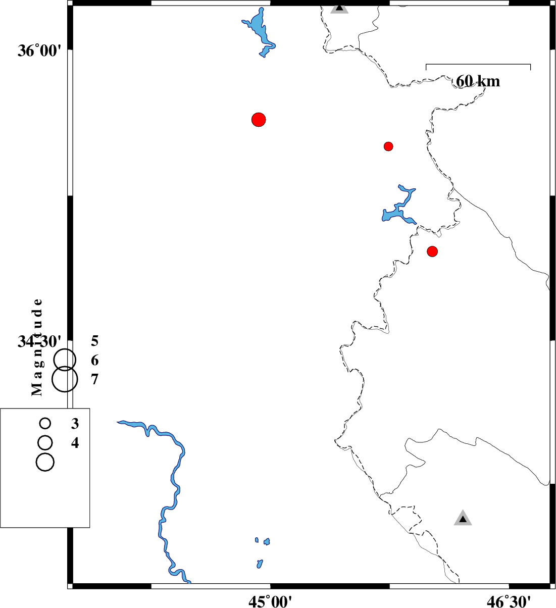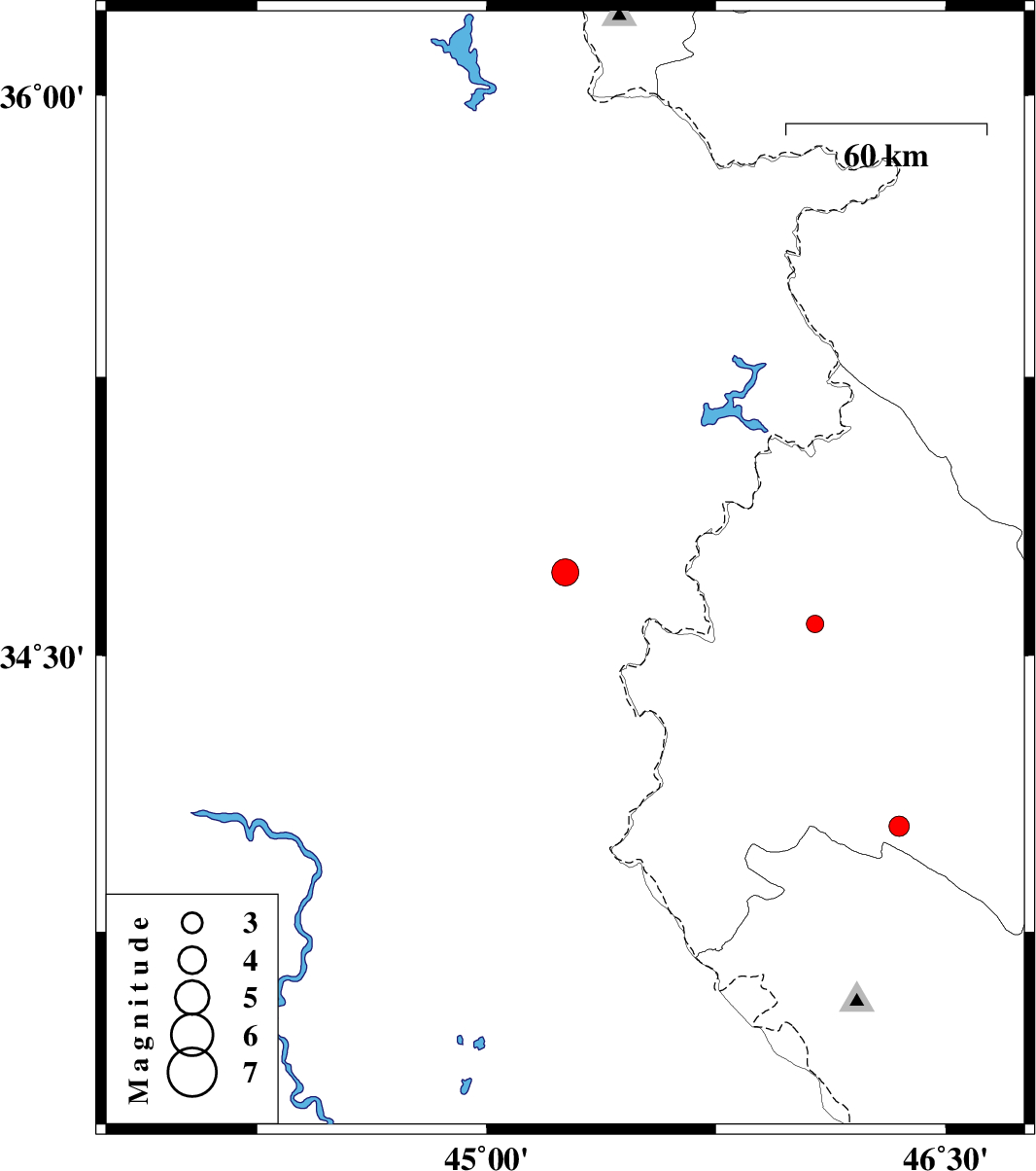 | 2018/03/16 | 15:58:49.3 | 19:28:49.3 | 34.038 | 46.348 | 14 | ML2.9 | Kermanshah Province, 24 km North of Eyvan |