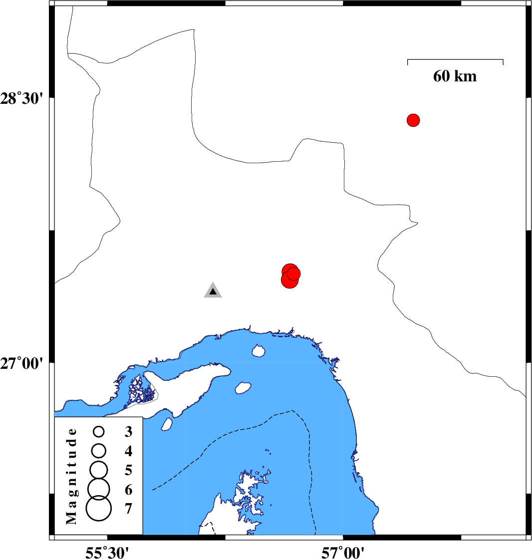 | 2018/03/17 | 15:24:53.3 | 18:54:53.3 | 28.372 | 57.446 | 14 | ML3.7 | Kerman Province, 44 km South-West of Jiroft |