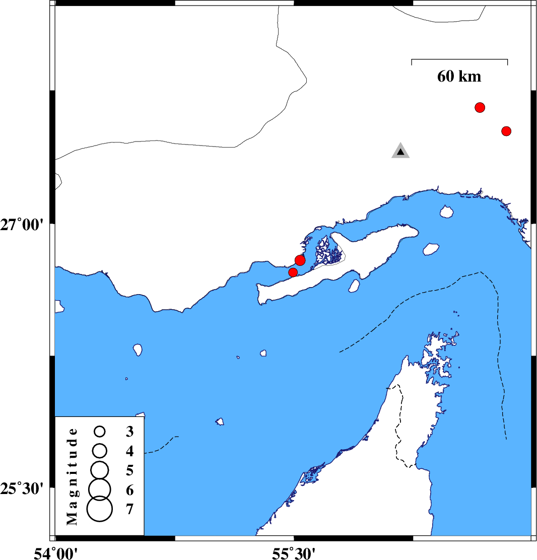 | 2018/04/03 | 19:58:24.7 | 00:28:24.7 | 26.792 | 55.537 | 10 | ML2.9 | , 75 km South-West of Qeshm | ||