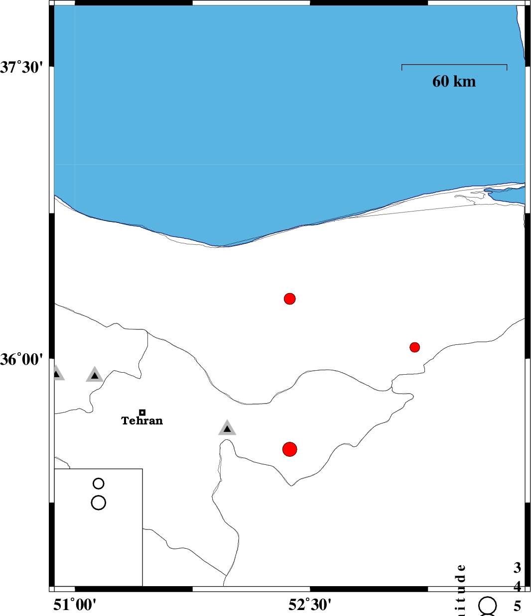 | 2018/04/03 | 20:26:31.9 | 00:56:31.9 | 36.31 | 52.369 | 15 | ML3.2 | Mazandaran Province, 18 km South of Amol | ||
