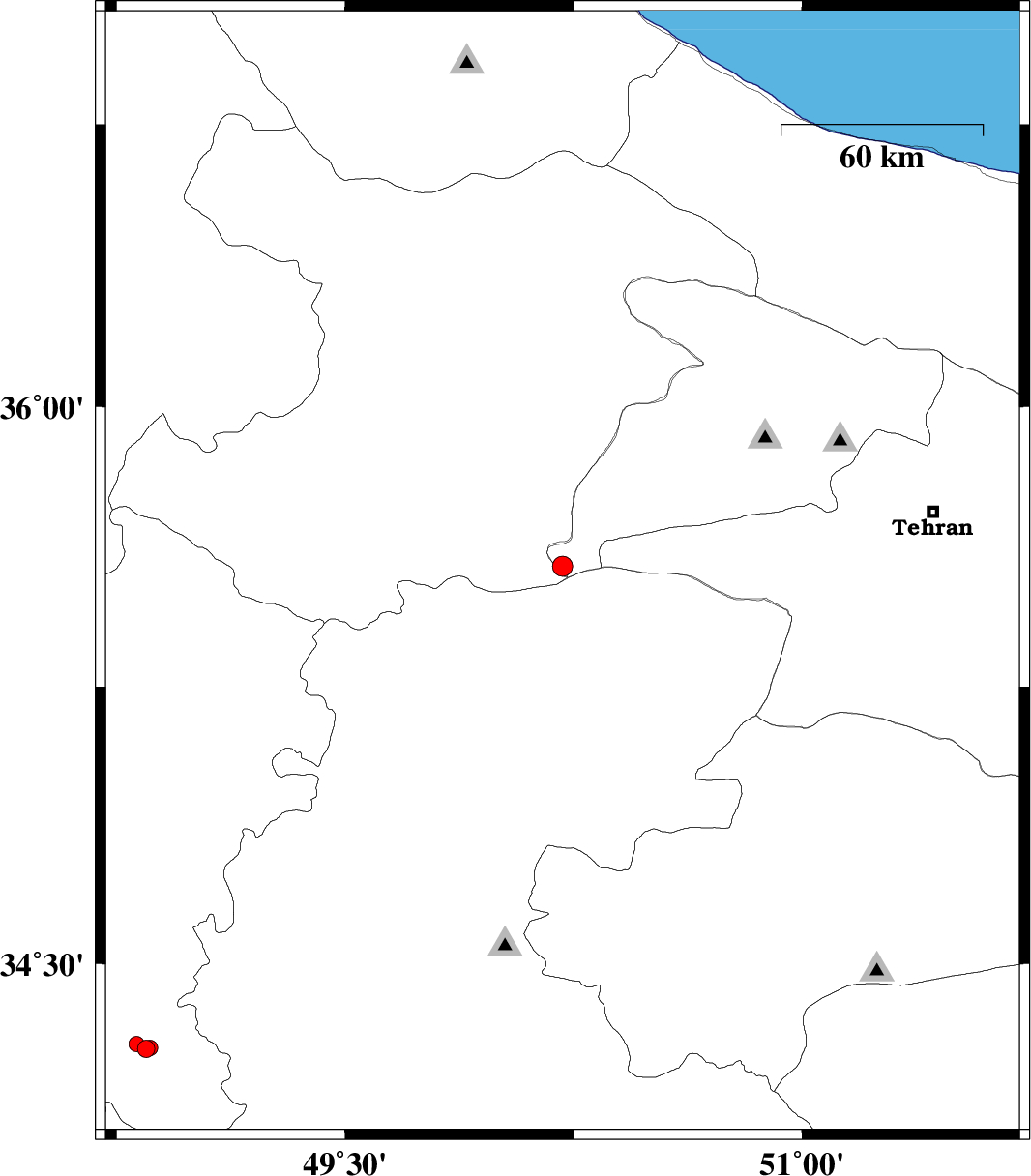 | 2018/04/06 | 17:36:56.6 | 22:06:56.6 | 36.833 | 51.581 | 6 | ML2.9 | Caspian Sea, 22 km North of Nowshahr | ||