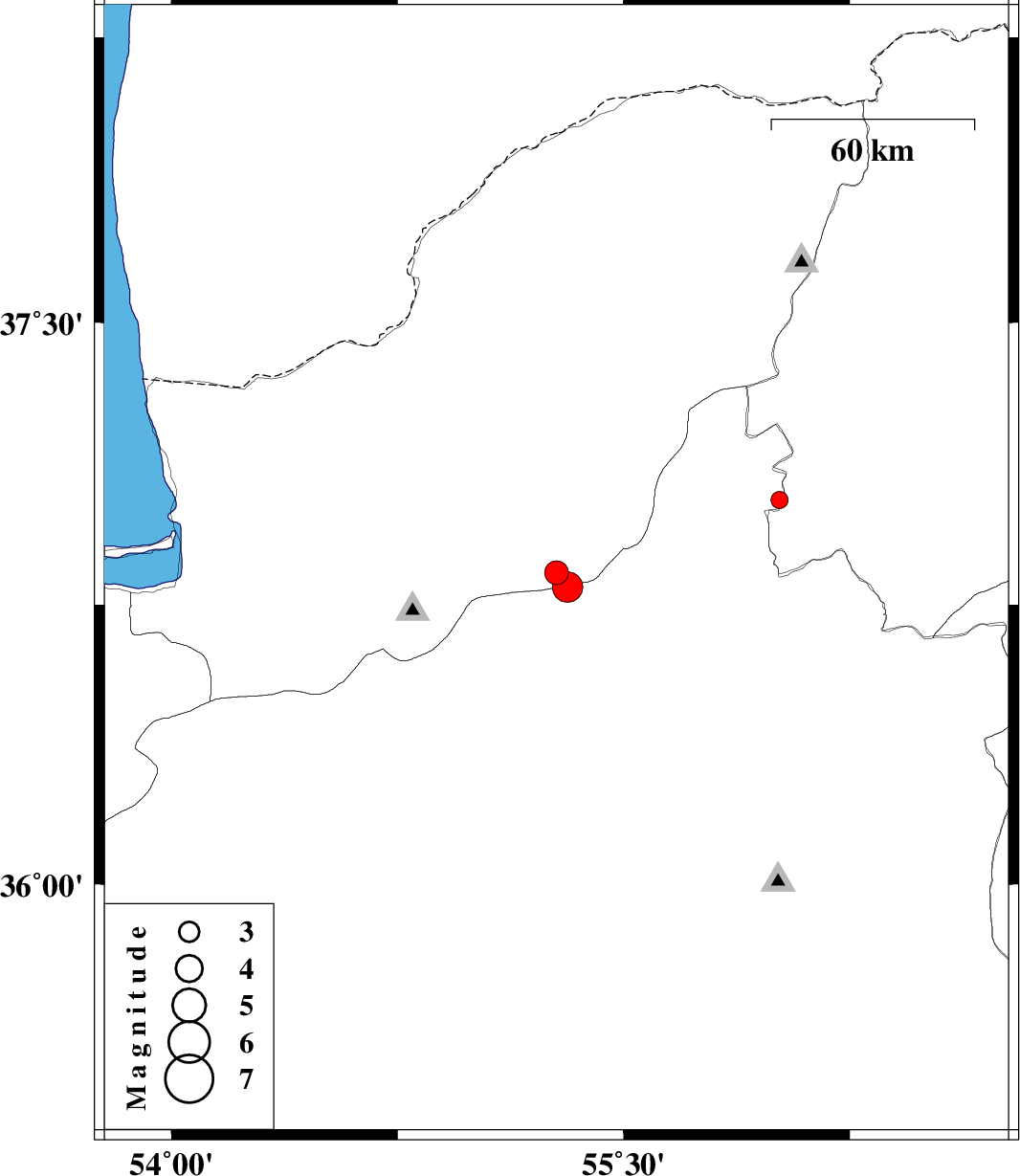 | 2018/03/18 | 02:53:14.9 | 06:23:14.9 | 36.797 | 55.314 | 15 | ML4.5 | Semnan Province, 28 km South-East of Ramian | ||