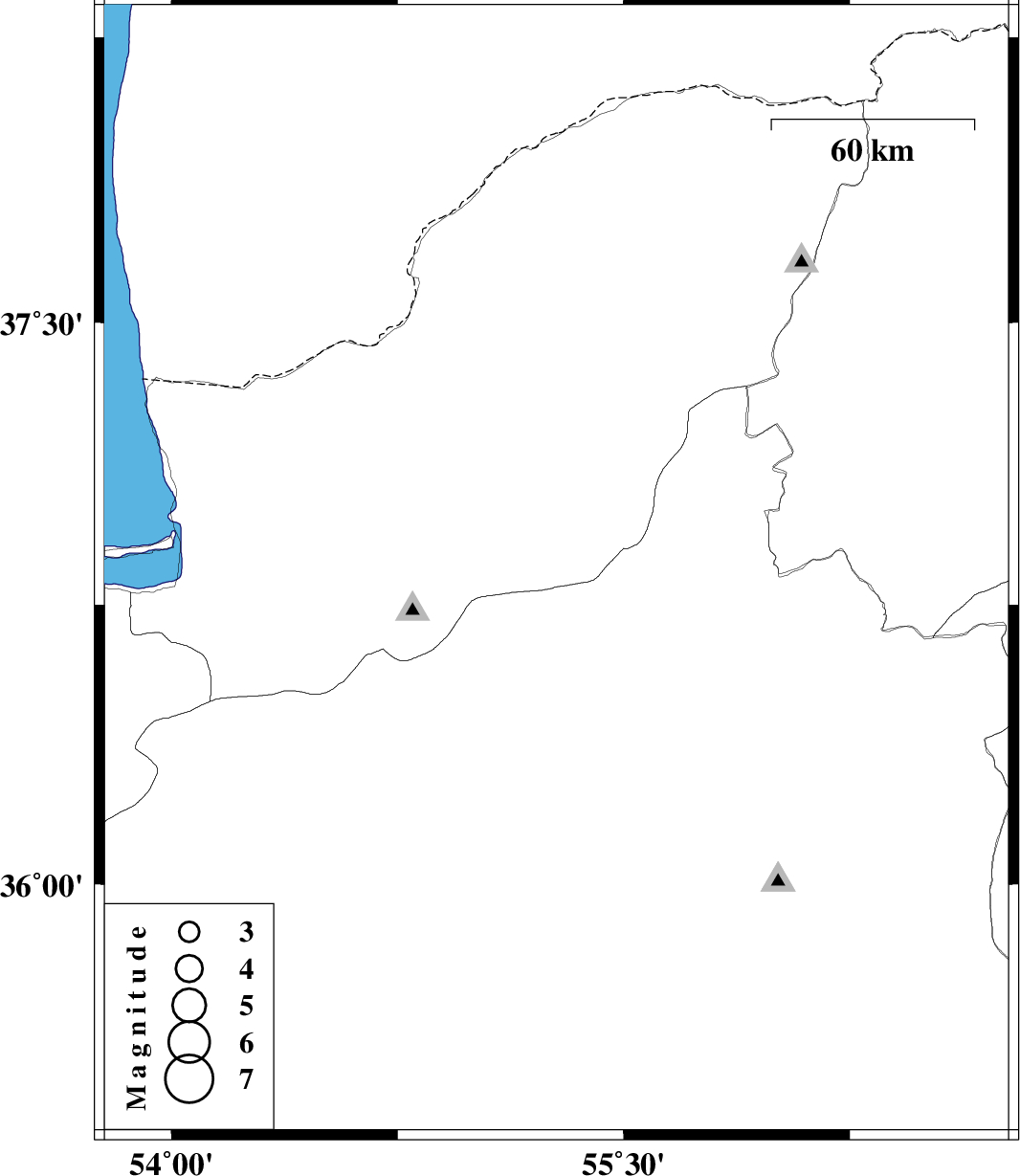 | 2018/04/10 | 19:38:52.7 | 00:08:52.7 | 36.836 | 55.277 | 14 | ML3.5 | Golestan Province, 23 km South-East of Ramian |