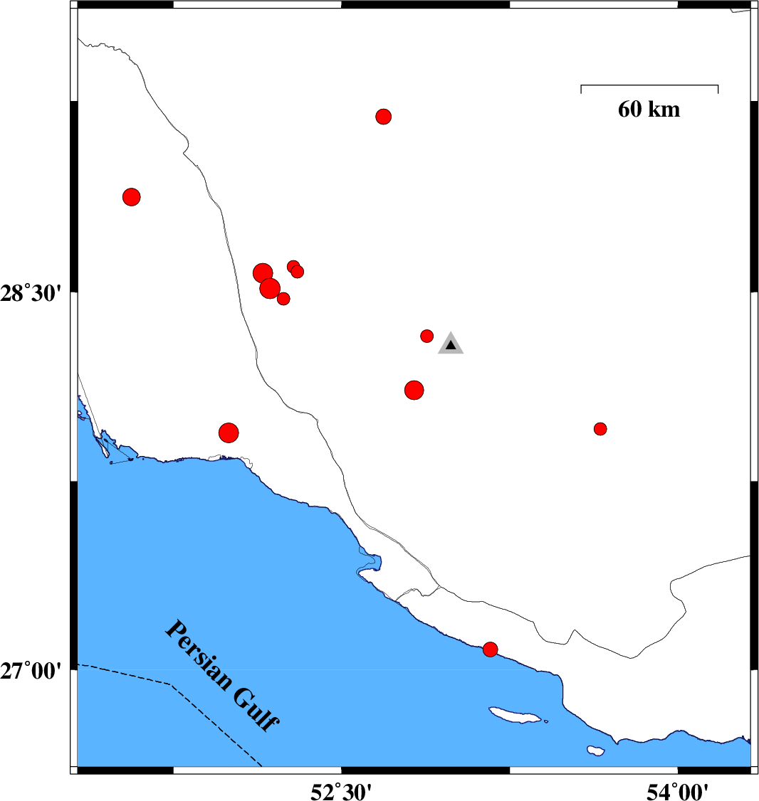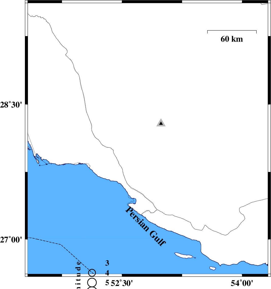Bushehr Province, 14 km North of Bandar-e kangan | |
