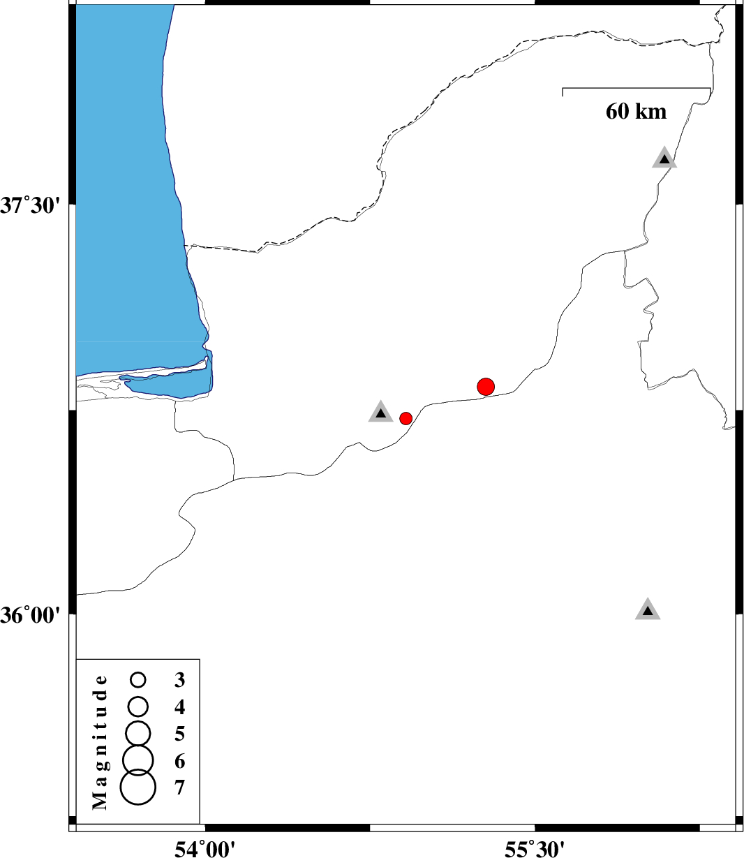 | 2018/04/10 | 19:38:52.7 | 00:08:52.7 | 36.836 | 55.277 | 14 | ML3.5 | Golestan Province, 23 km South-East of Ramian |