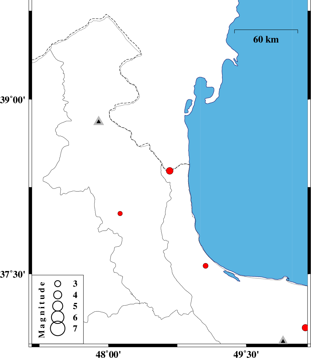 | 2018/04/23 | 13:08:04.1 | 17:38:04.1 | 38.39 | 48.667 | 15 | ML3.4 | Gilan Province, 17 km -West of Astara | ||