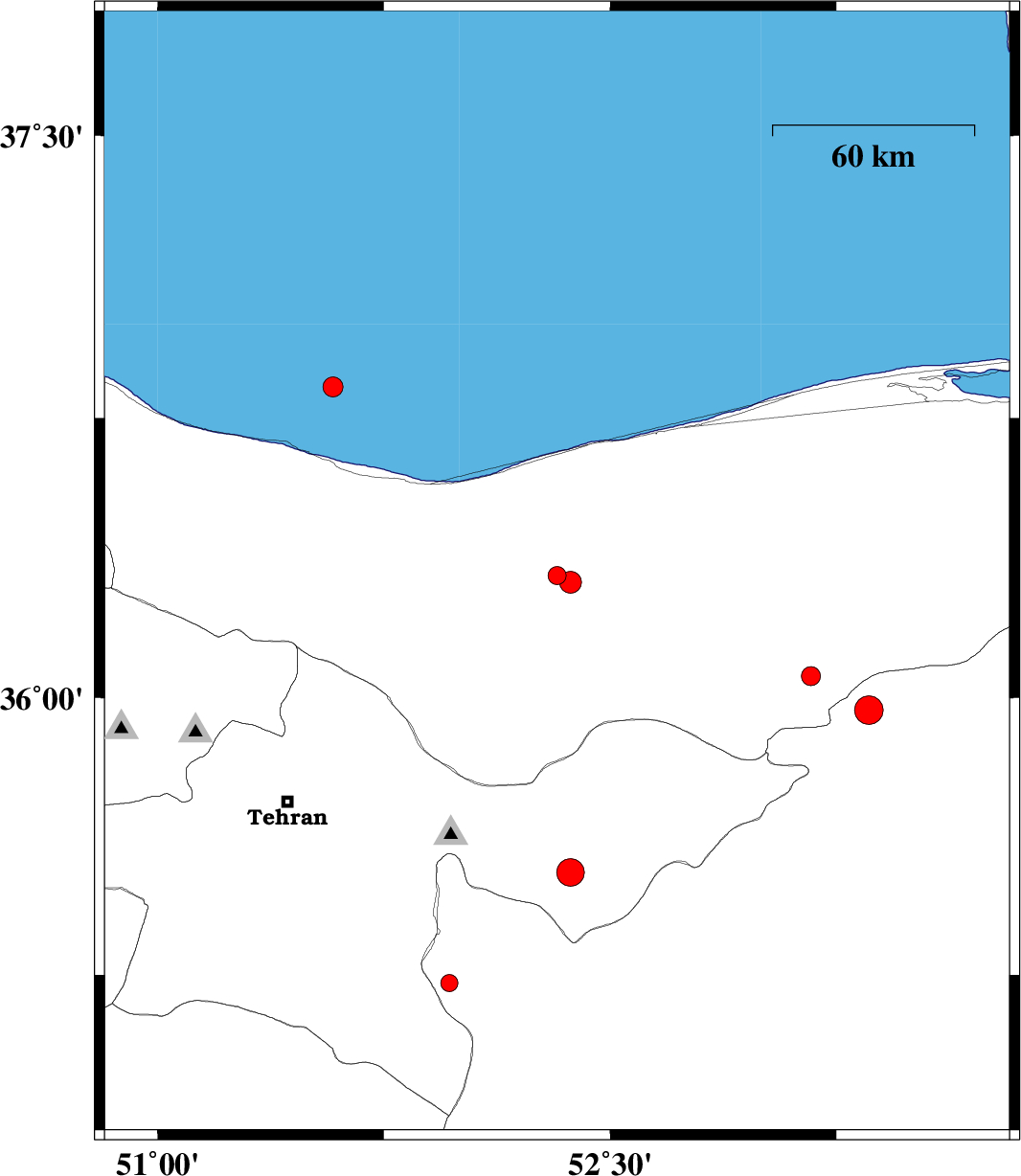 Caspian Sea, 22 km North of Nowshahr | |