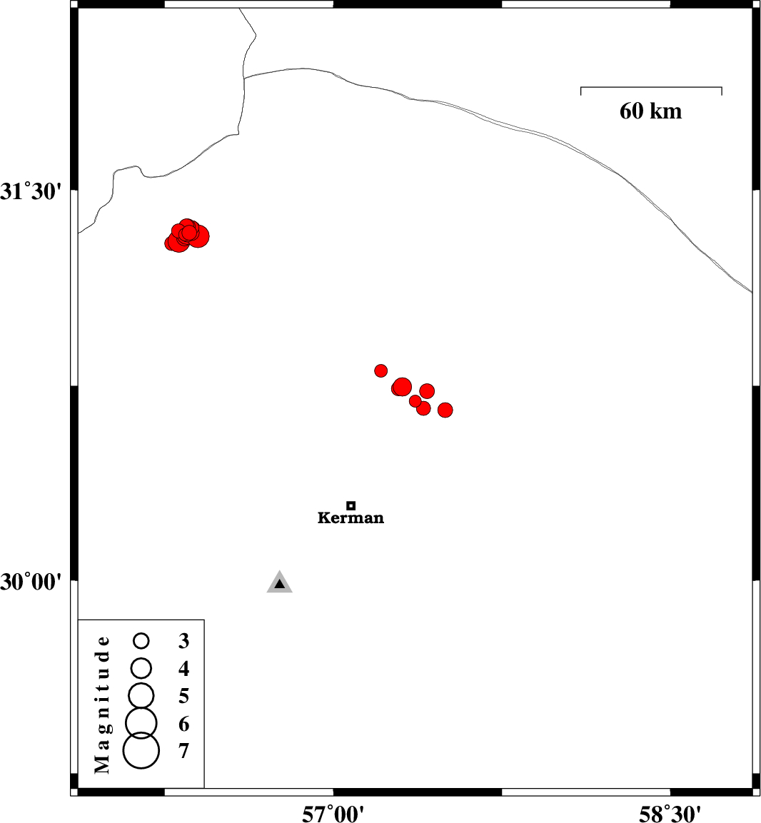 2018/04/27 06:44:45.6 11:14:45.6 30.7357.41714 ML2.9 Kerman Province, 59 km North-East of Kerman
