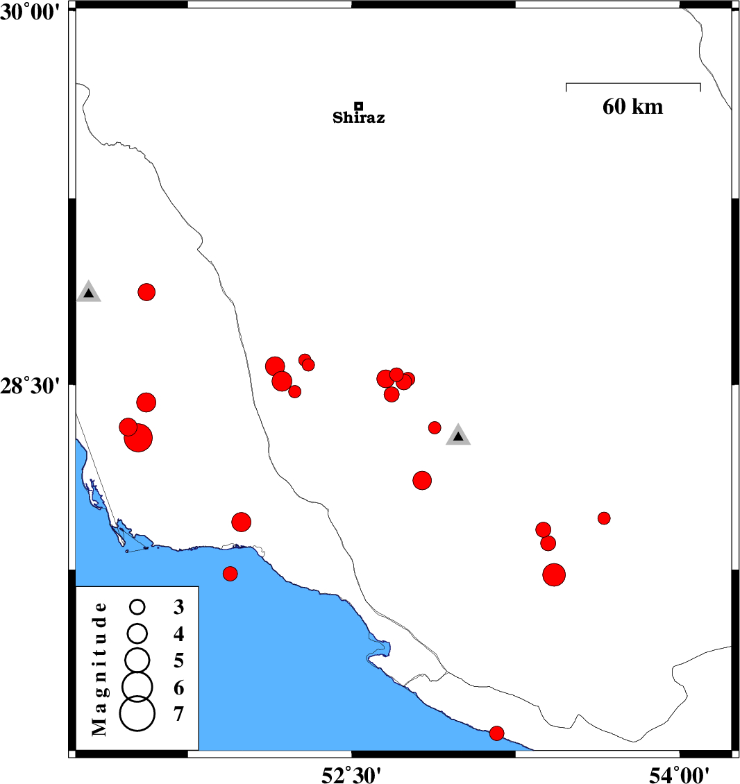 2018/04/19 06:34:45.3 11:04:45.3 28.28551.52414 Mw5.8 Bushehr Province, 43 km South-East of Khormog