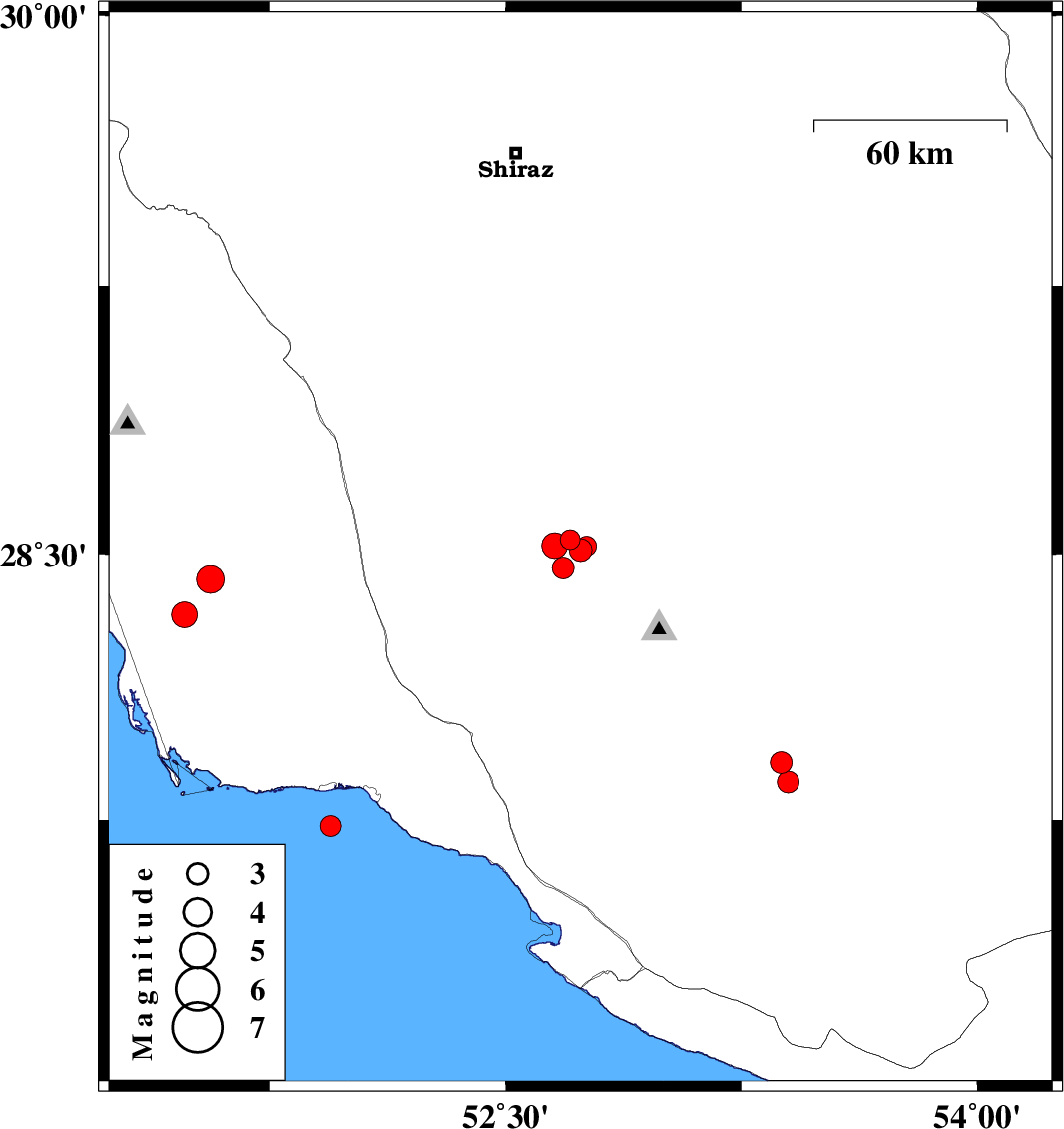 2018/04/30 06:16:03.2 10:46:03.2 27.73351.94415 ML2.9 Persian Gulf, 16 km -West of Bandar-e kangan