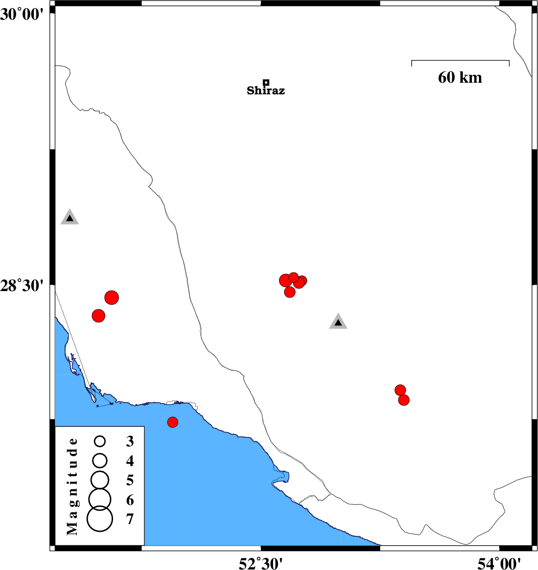 2018/04/29 03:43:35.8 08:13:35.8 28.42851.5622 ML4 Bushehr Province, 31 km South-East of Khormog