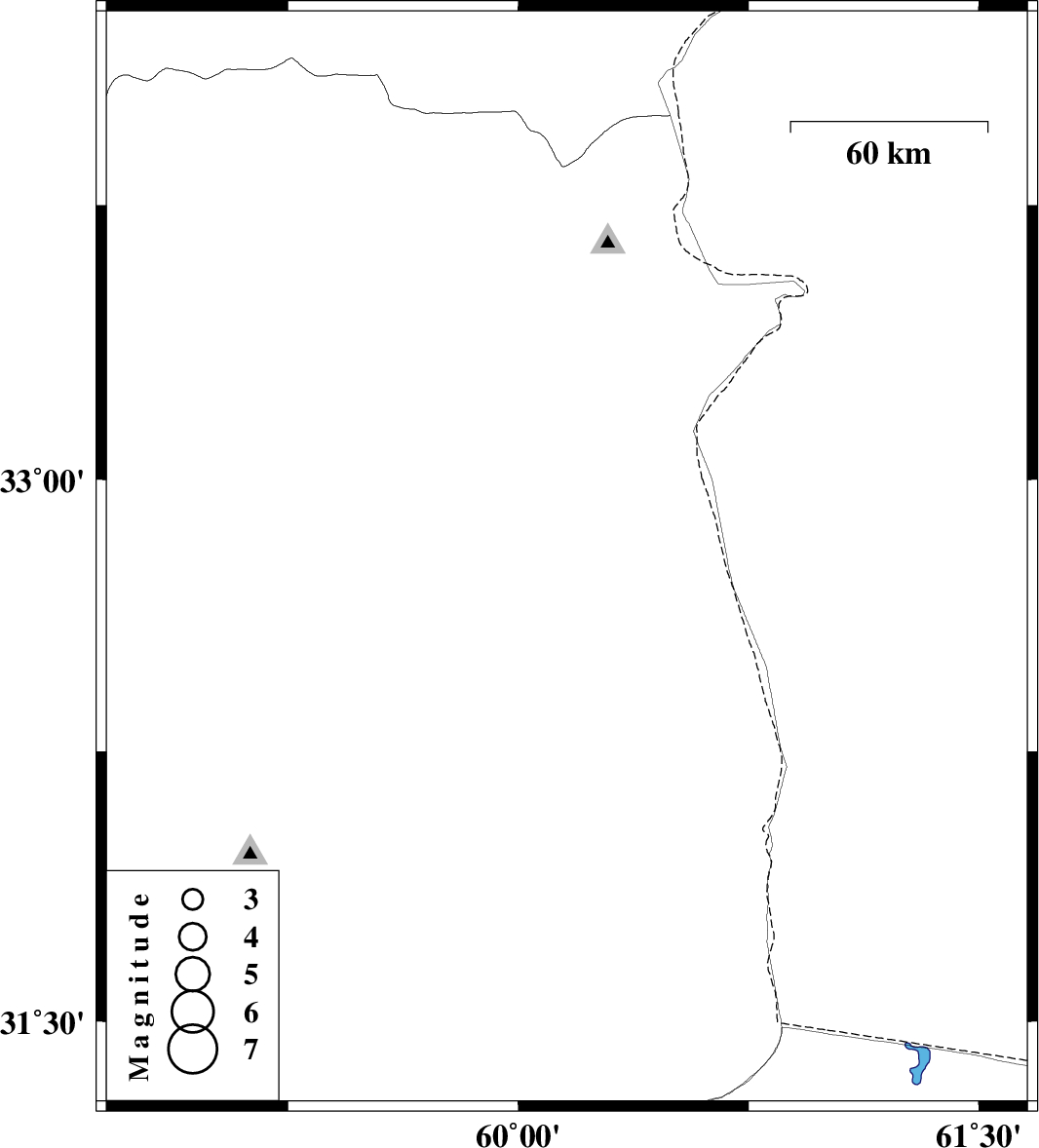 | 2018/04/30 | 08:07:31.4 | 12:37:31.4 | 32.778 | 60.158 | 15 | ML3.1 | Khorasan(south) Province, 39 km North-East of Sarbisheh |