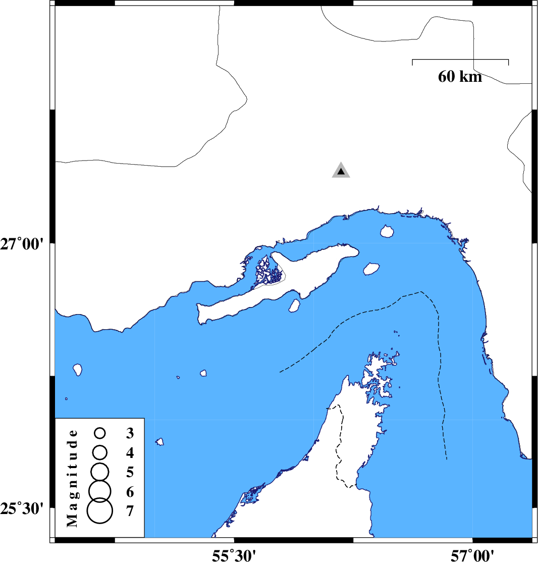 | 2018/05/05 | 18:13:56.1 | 22:43:56.1 | 26.83 | 55.873 | 19 | ML3.7 | Persian Gulf, 41 km South-West of Qeshm |