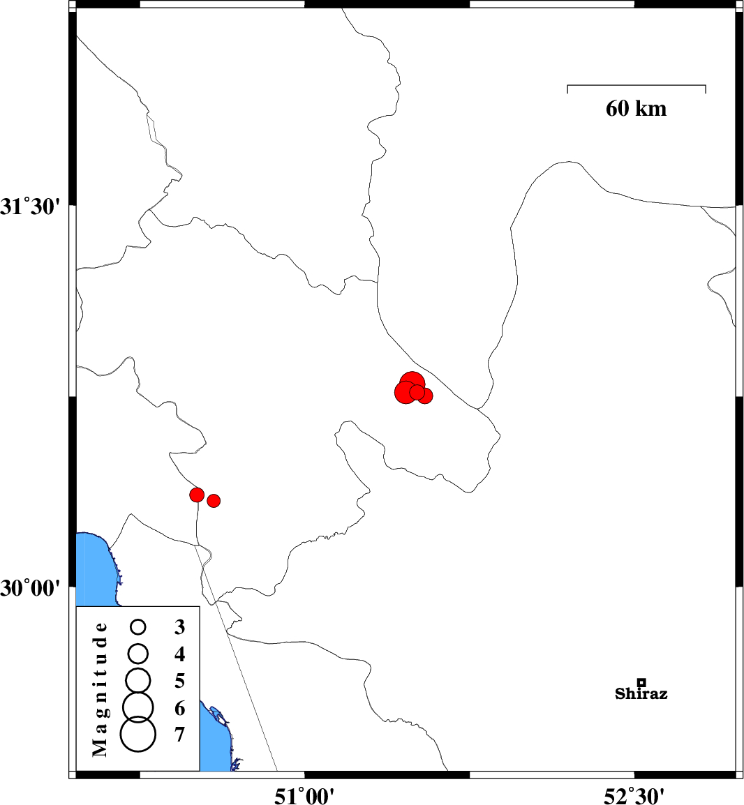 2018/05/04 02:34:35.4 07:04:35.4 30.36250.50925 ML3 Khoozestan Province, 27 km -West of Dogonbadan
