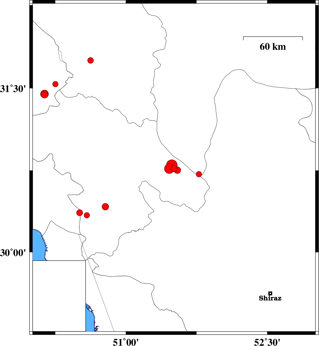 2018/05/04 02:34:35.4 07:04:35.4 30.36250.50925 ML3 Khoozestan Province, 27 km -West of Dogonbadan