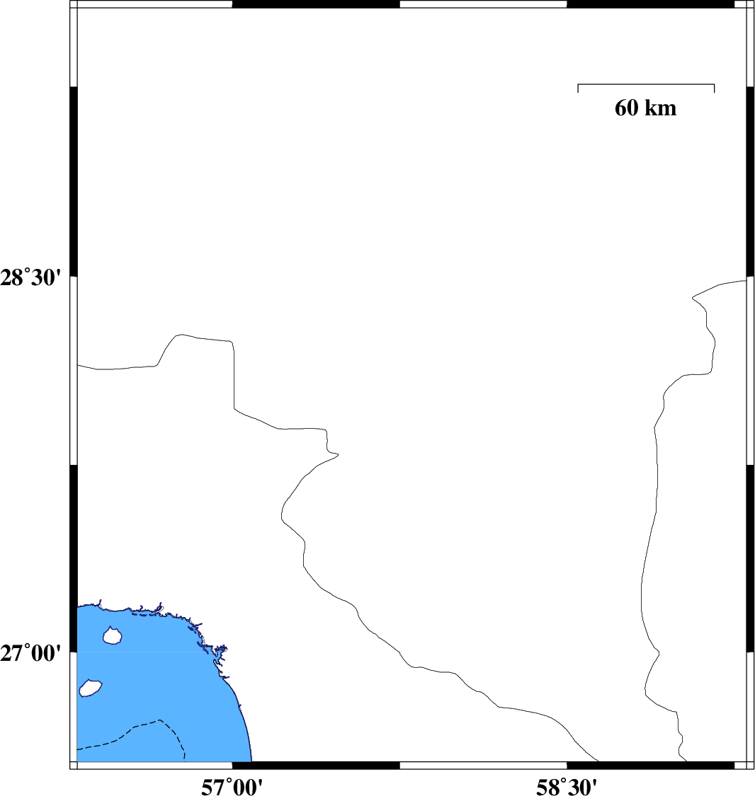 | 2018/05/08 | 18:27:35.2 | 22:57:35.2 | 28.059 | 57.804 | 15 | ML4.6 | Kerman Province, 16 km North-East of Kahnuj | ||