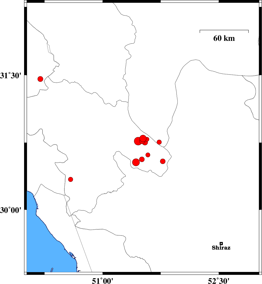 |  | 2018/05/10 | 07:19:09.0 | 11:49:09.0 | 30.564 | 51.507 | 15 | ML3 | Kohkiluieh va boyerahmad Province, 14 km South of Yasuj |  |