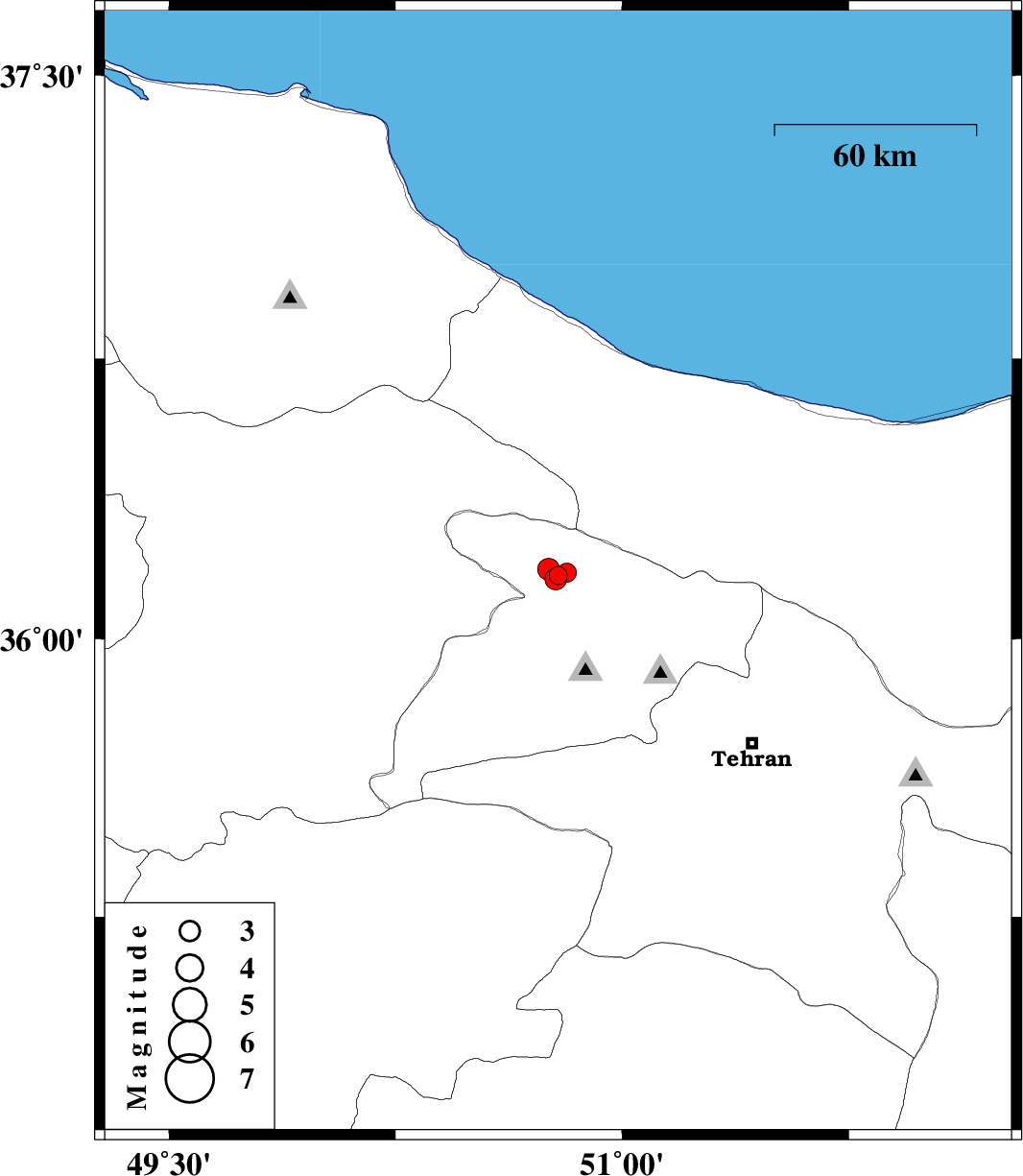 | 2018/05/13 | 13:14:52.9 | 17:44:52.9 | 36.171 | 50.788 | 15 | ML2.7 | Tehran Province, 26 km North-East of Hashtgerd | ||