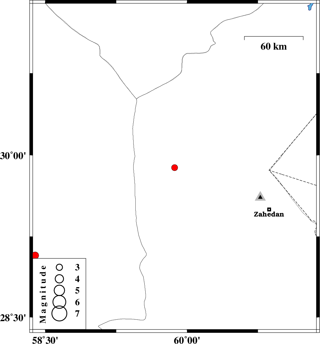 | 2018/04/19 | 18:22:05.7 | 22:52:05.7 | 29.886 | 59.868 | 14 | ML2.9 | Sistan va Baloochestan Province, 106 km North-West of Zahedan | ||