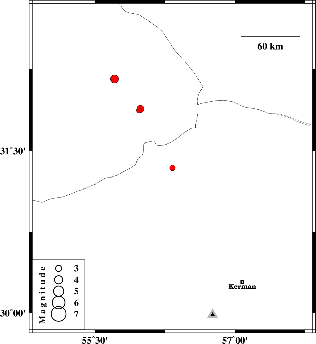 | 2018/05/15 | 00:47:04.2 | 05:17:04.2 | 31.883 | 55.988 | 14 | ML3.5 | Yazd Province, 64 km North-East of Bafq | ||
