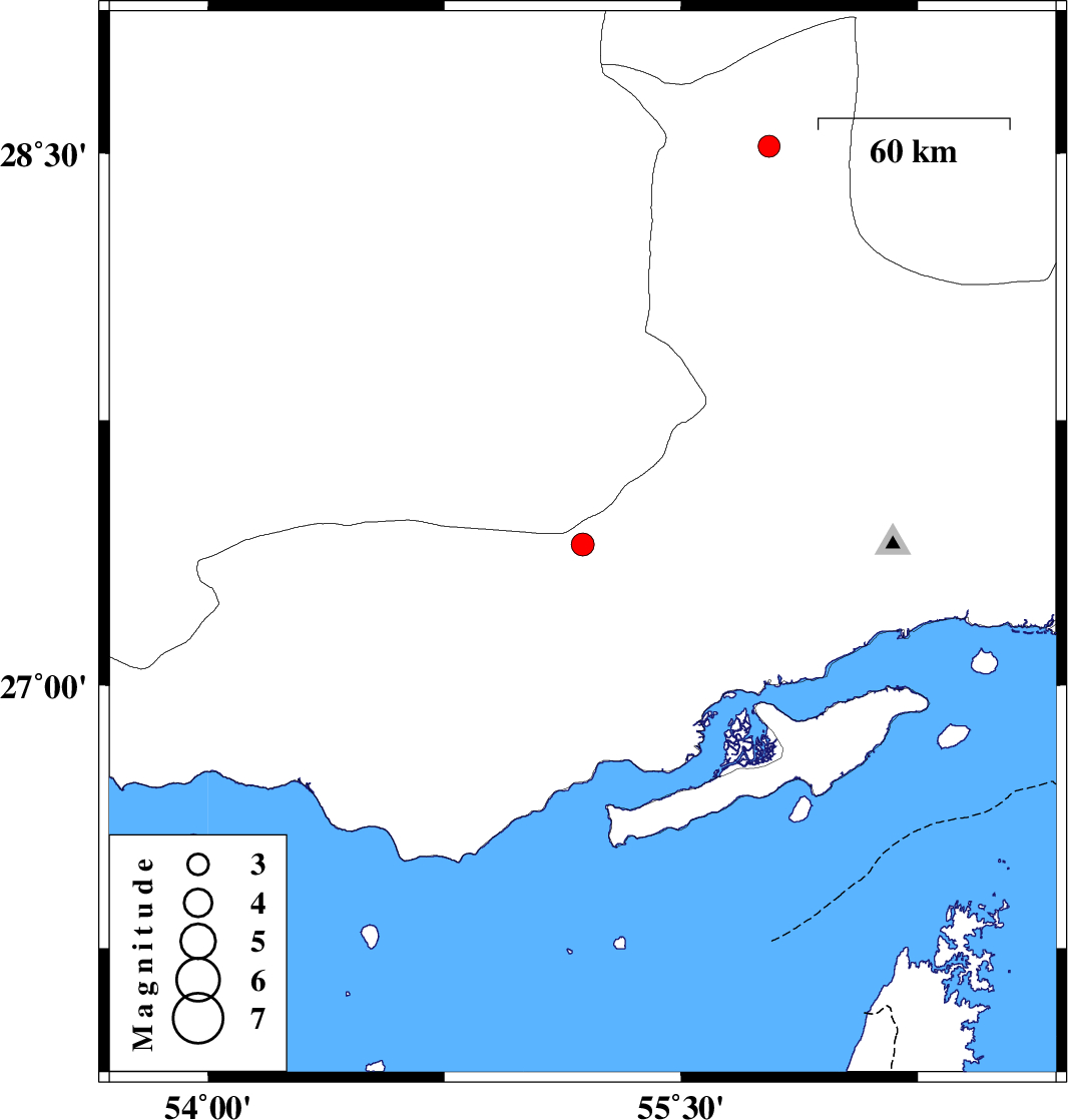 | 2018/05/19 | 04:00:40.7 | 08:30:40.7 | 27.398 | 55.188 | 14 | ML3.2 | Hormozgan Province, 84 km North-East of Bastak | ||
