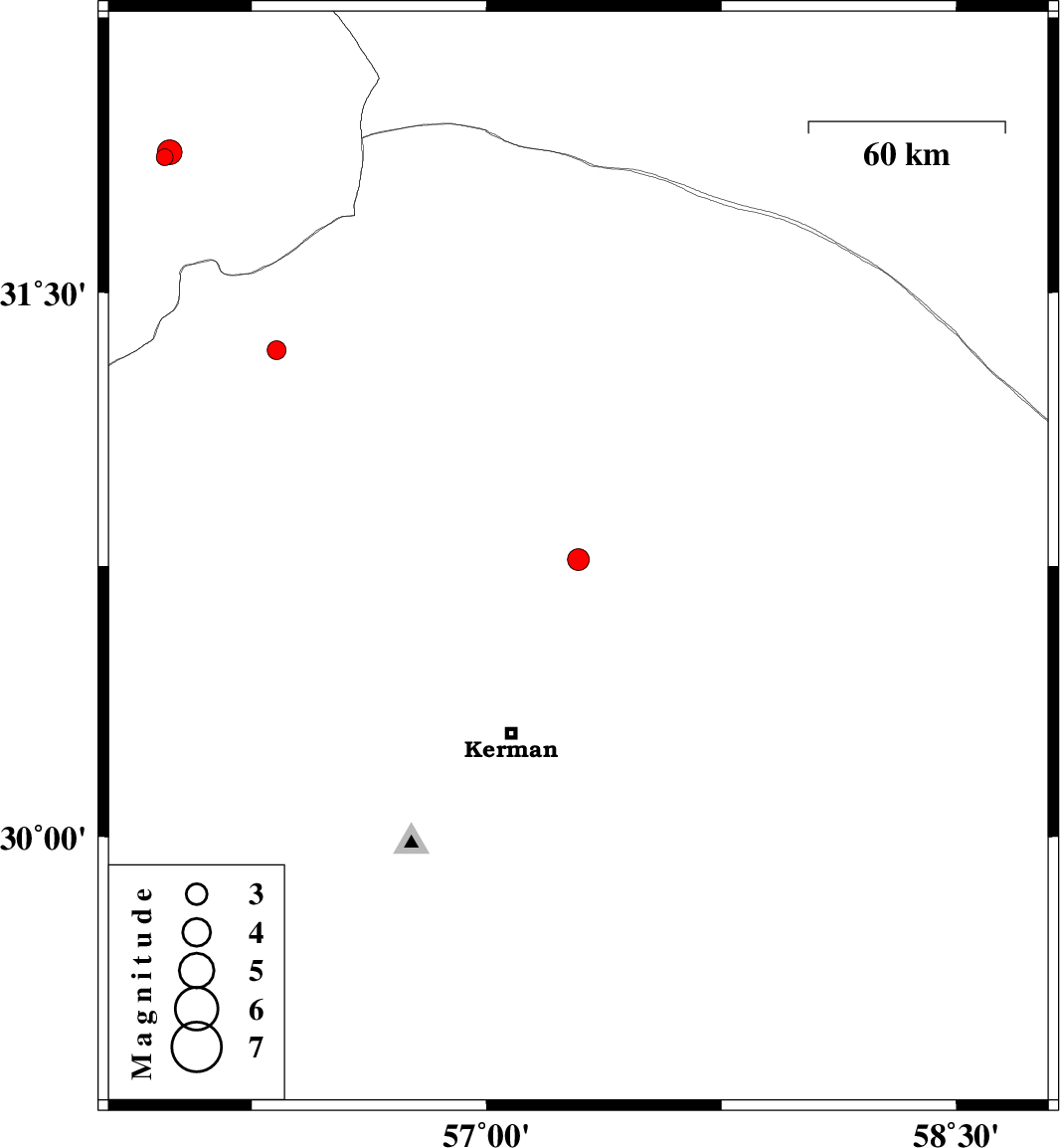 | 2018/05/16 | 19:35:38.5 | 00:05:38.5 | 30.767 | 57.293 | 14 | ML3.1 | Kerman Province, 57 km North-East of Kerman | ||